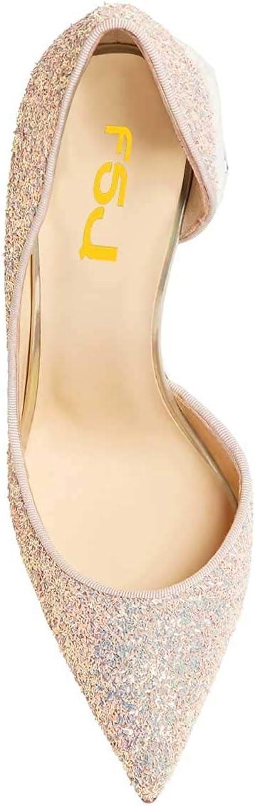FSJ Women Formal Dress Shoes Pointed Toe D’Orsay High Heels Sexy Stiletto Versatile Office Wear Pumps Size 4-15 US(Multi)