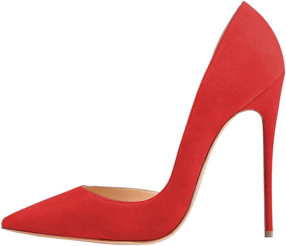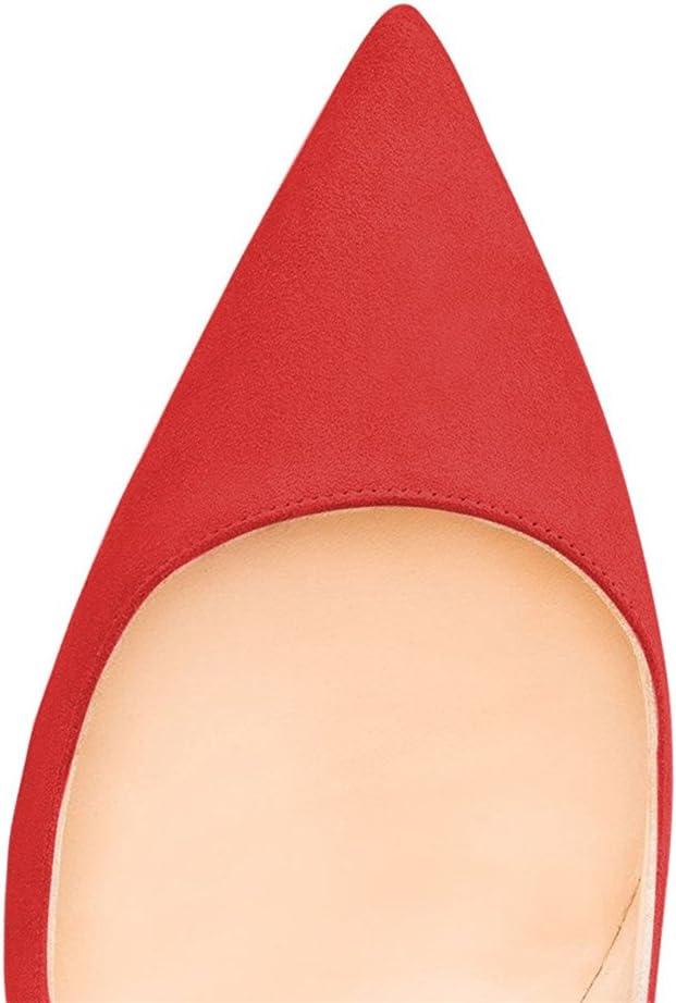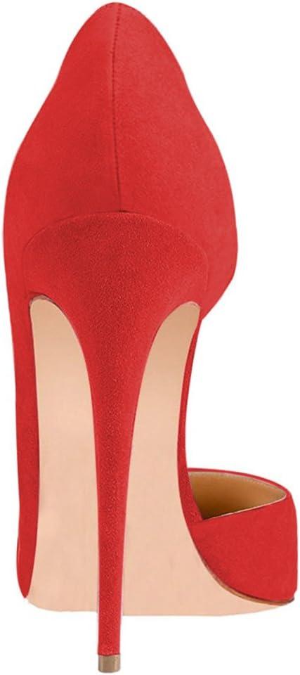 FSJ Women Formal Dress Shoes Pointed Toe D'Orsay High Heels Sexy Stiletto Versatile Office Wear Pumps Size 4-15 US(Red Suede)