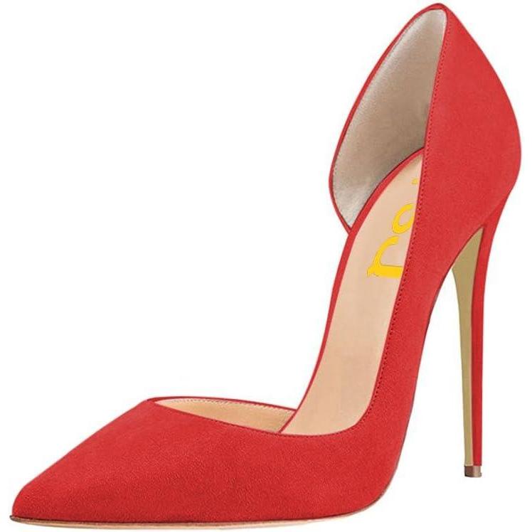 FSJ Women Formal Dress Shoes Pointed Toe D’Orsay High Heels Sexy Stiletto Versatile Office Wear Pumps Size 4-15 US(Red Suede)