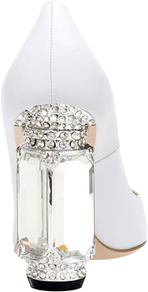 FSJ Women Gorgeous Pointed Toe Crystal Block Chunky High Heel Pumps Slip On Ladies Wedding Evening Shoes Size 4-16 US(White)