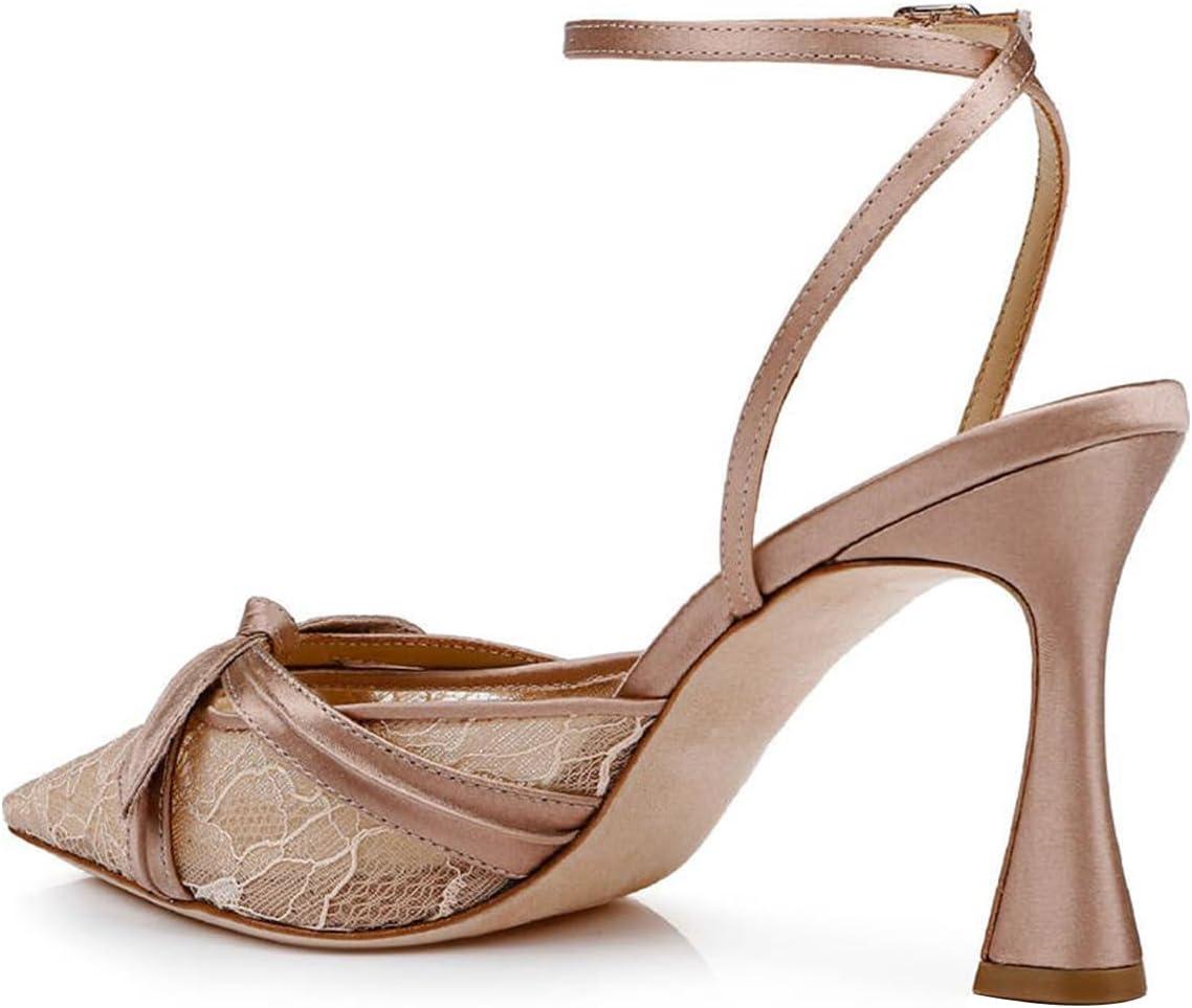 imageFSJ Women Lace High Heel Bowknot Closed Pointed Toe Pumps Ankle Strap DOrsay Heeled Sandals Wedding Bridal Satin Shoes Size 416 USChampagne