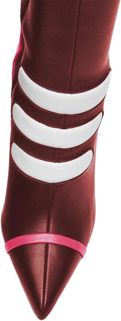 FSJ Women Multicolor Knee High Boots Pointed Toe Tall High Heel Long Boots Side Zipper Novel Color Matching Party Fancy Shoes Size 4-16 US(Red-black-white)