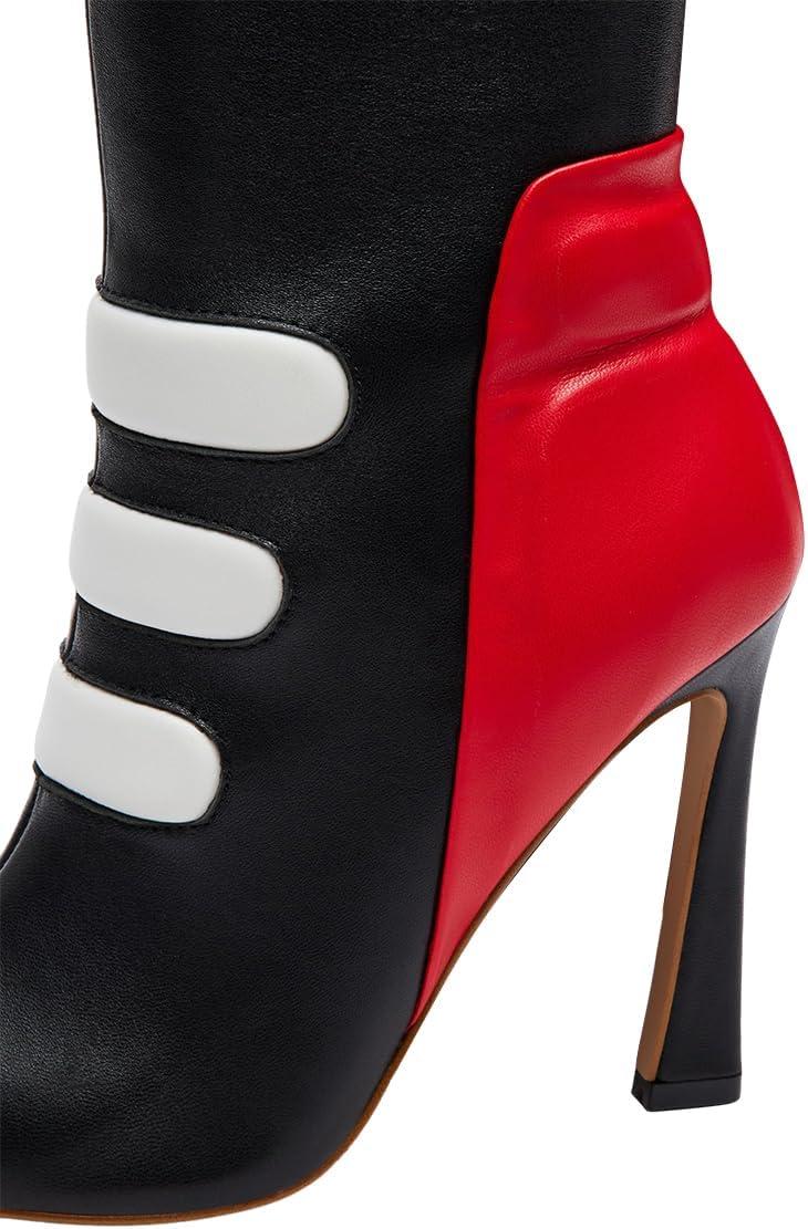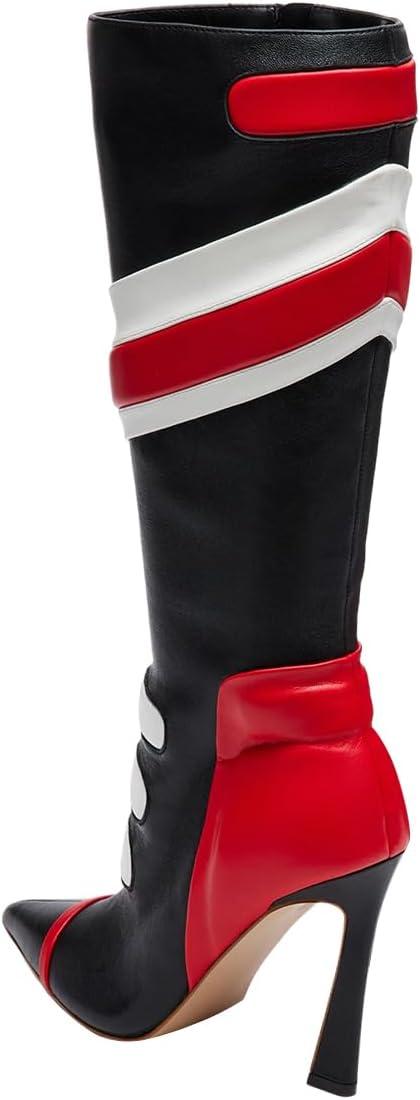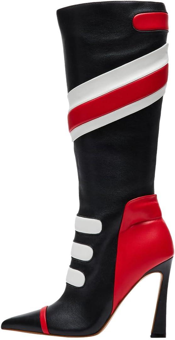 FSJ Women Multicolor Knee High Boots Pointed Toe Tall High Heel Long Boots Side Zipper Novel Color Matching Party Fancy Shoes Size 4-16 US(Red-black-white)