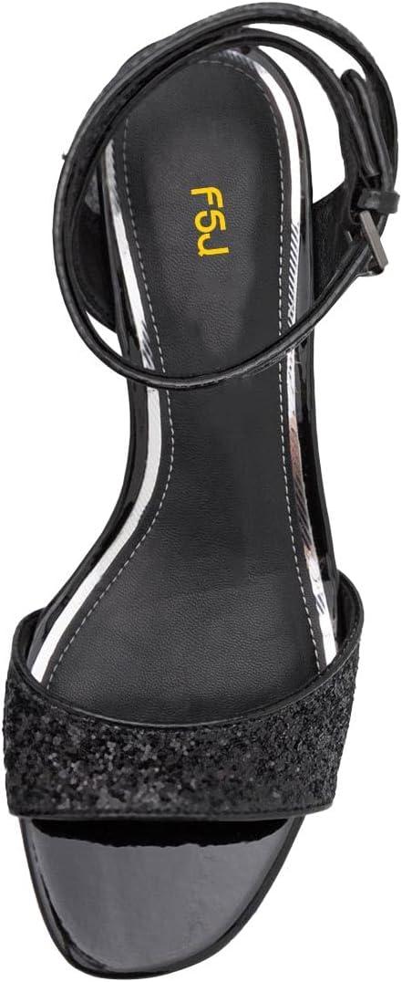 imageFSJ Women Open Toe Ankle Strap Sandals Crystal Chunky Block Low Heel Glitter Comfortable Party Bridal Wedding Dress Pumps Shoes Size 416 USBlack Glitter