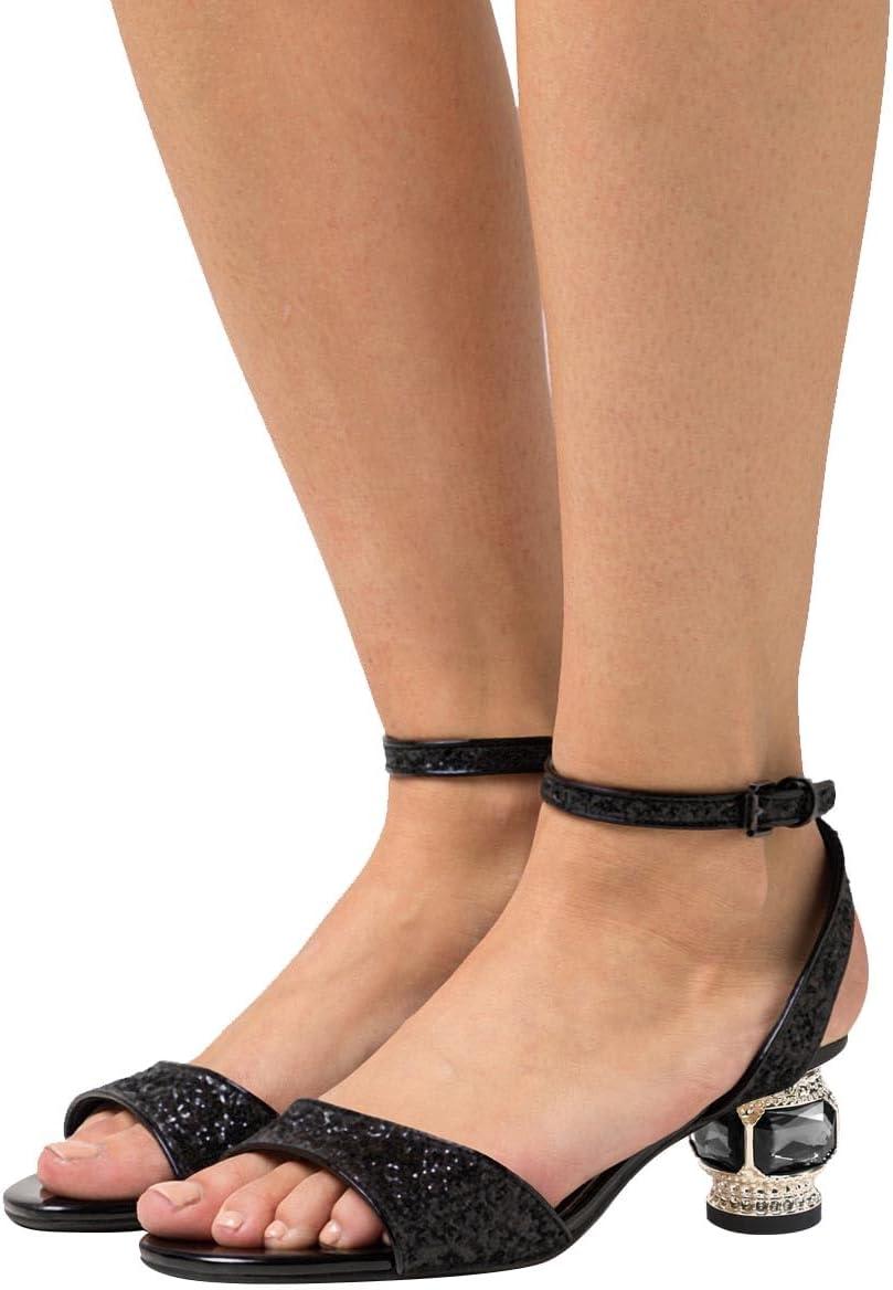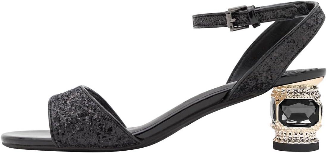 FSJ Women Open Toe Ankle Strap Sandals Crystal Chunky Block Low Heel Glitter Comfortable Party Bridal Wedding Dress Pumps Shoes Size 4-16 US(Black Glitter)
