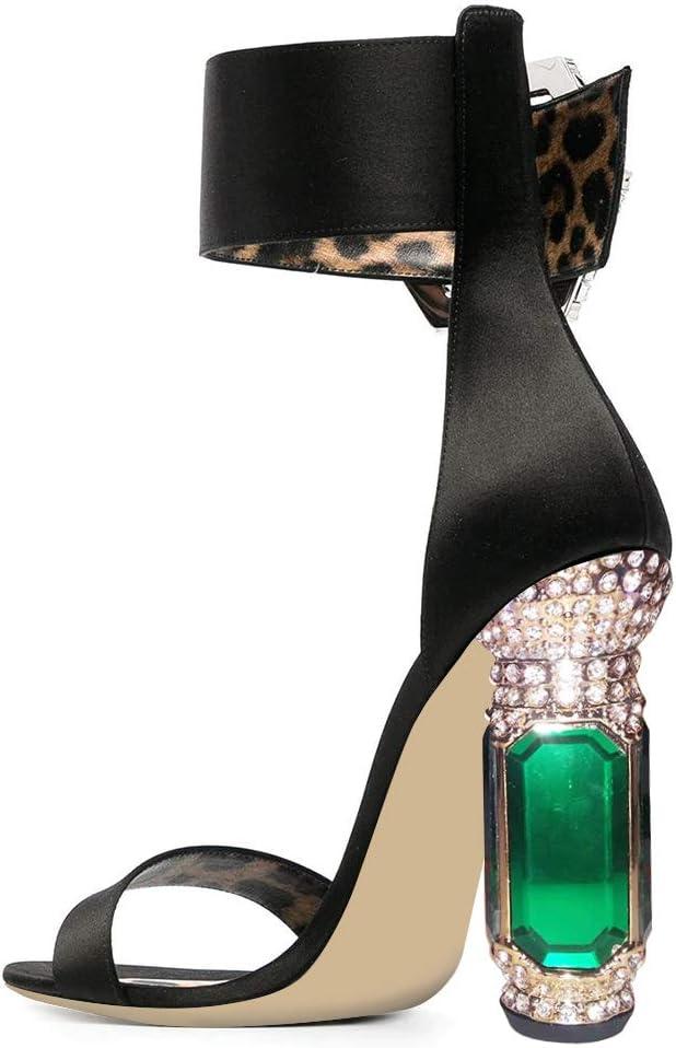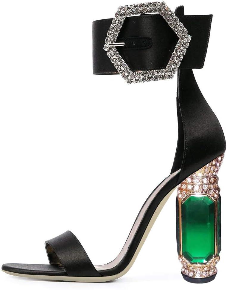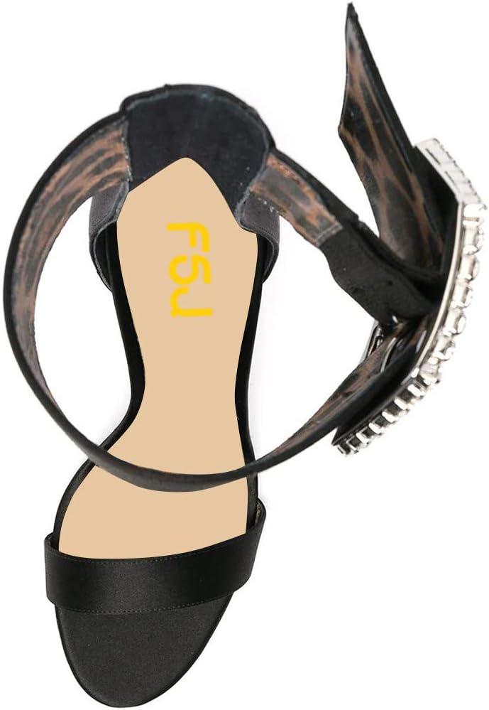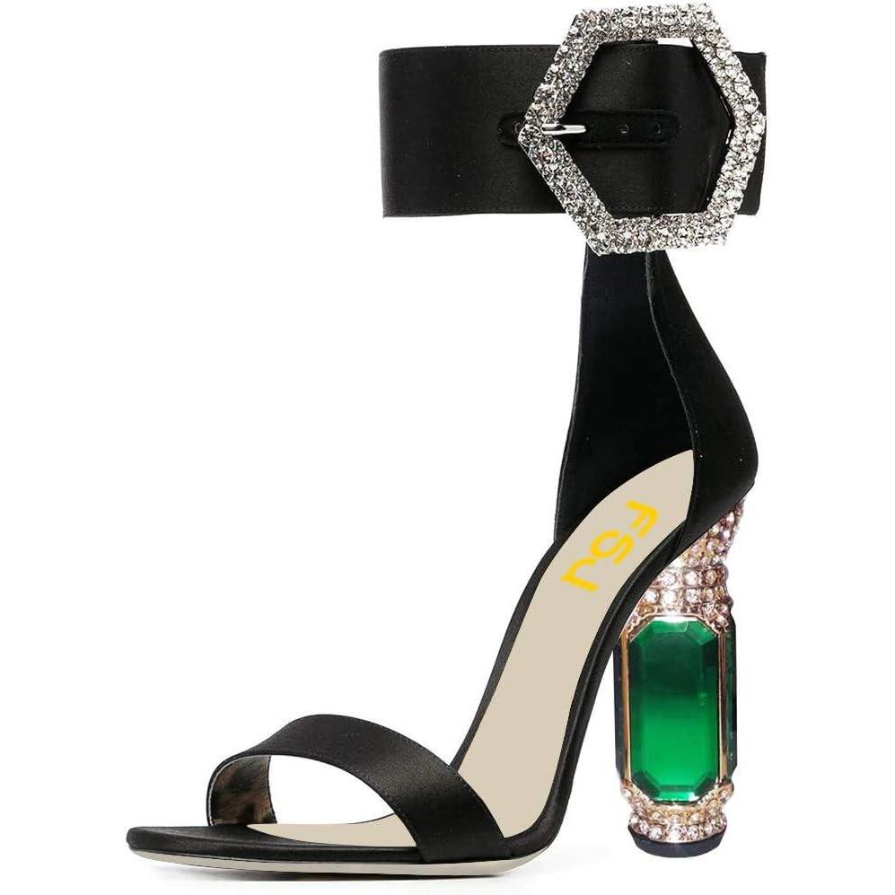 FSJ Women Open Toe Stylish Sandals Ankle Strap Chunky Block High Thick Heels Wedding Party Ballroom Shoes Size 4-15 US(Evening)