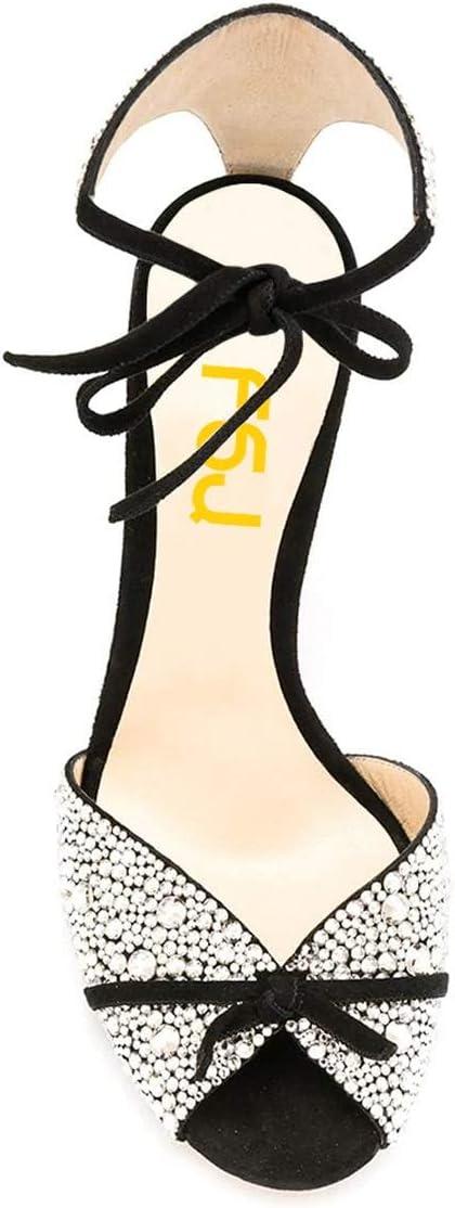 FSJ Women Open Toe Stylish Sandals Ankle Strap Chunky Block High Thick Heels Wedding Party Ballroom Shoes Size 4-15 US(Glitter)