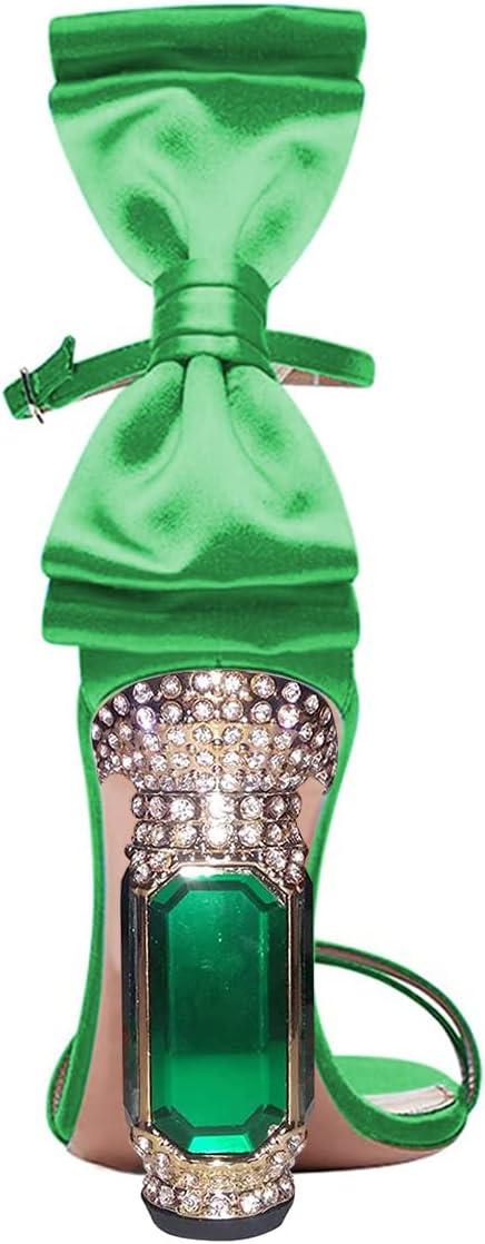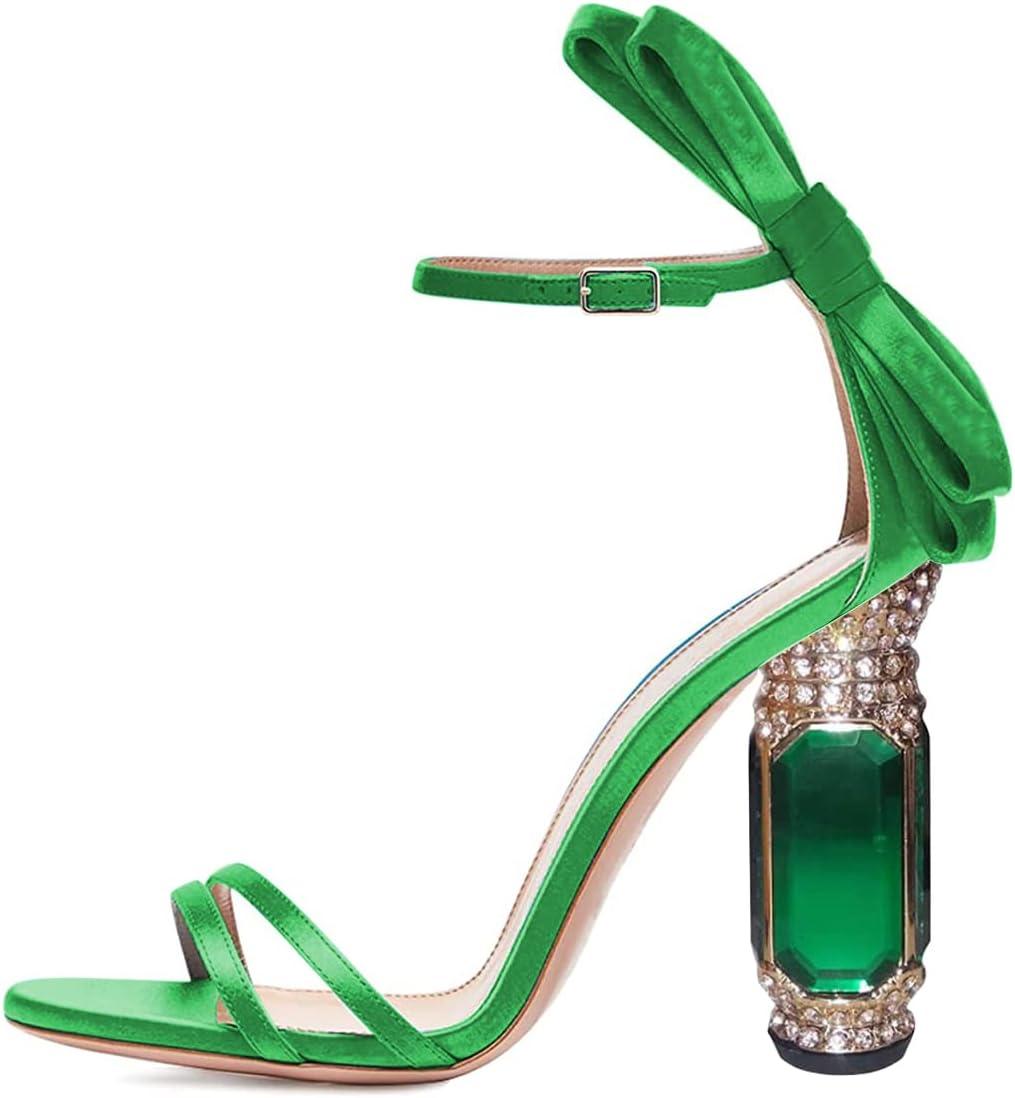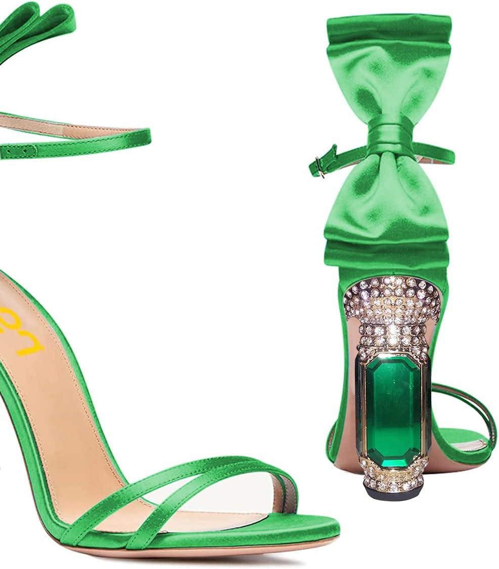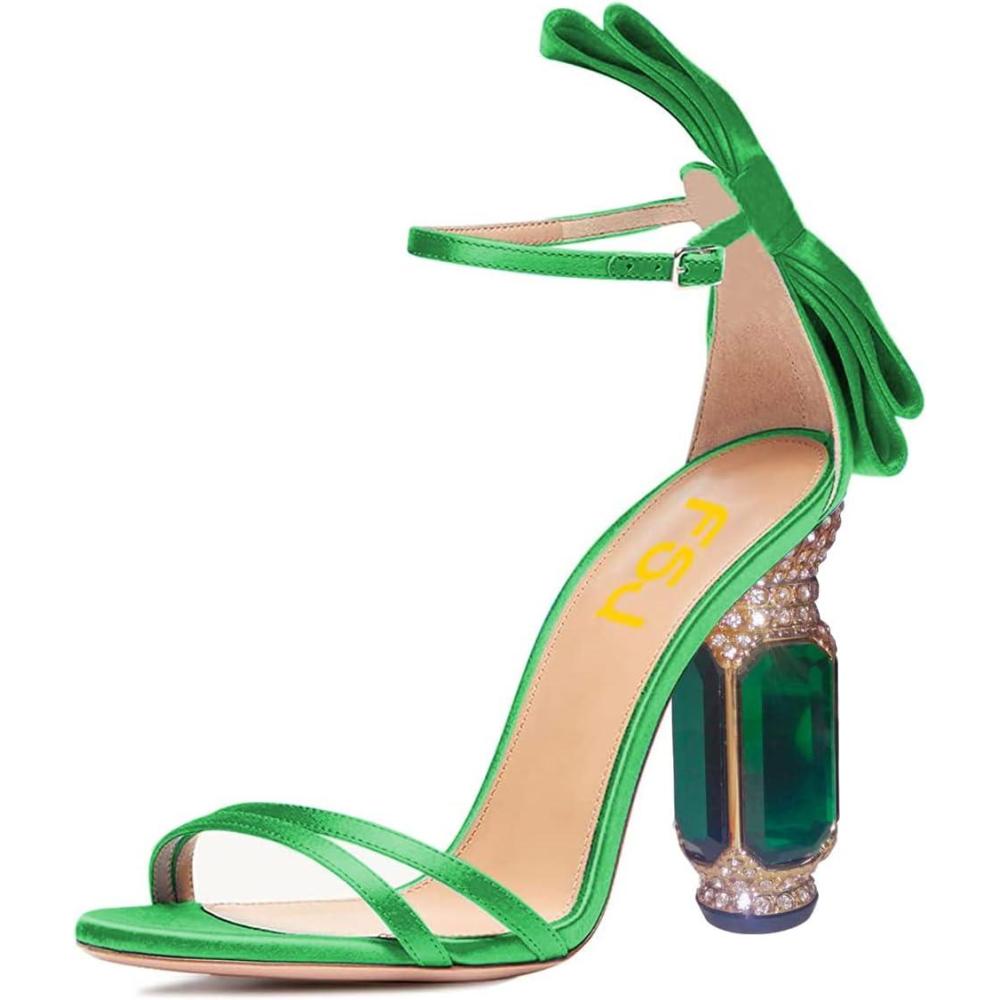 FSJ Women Open Toe Stylish Sandals Ankle Strap Chunky Block High Thick Heels Wedding Party Ballroom Shoes Size 4-15 US(Green Bow)