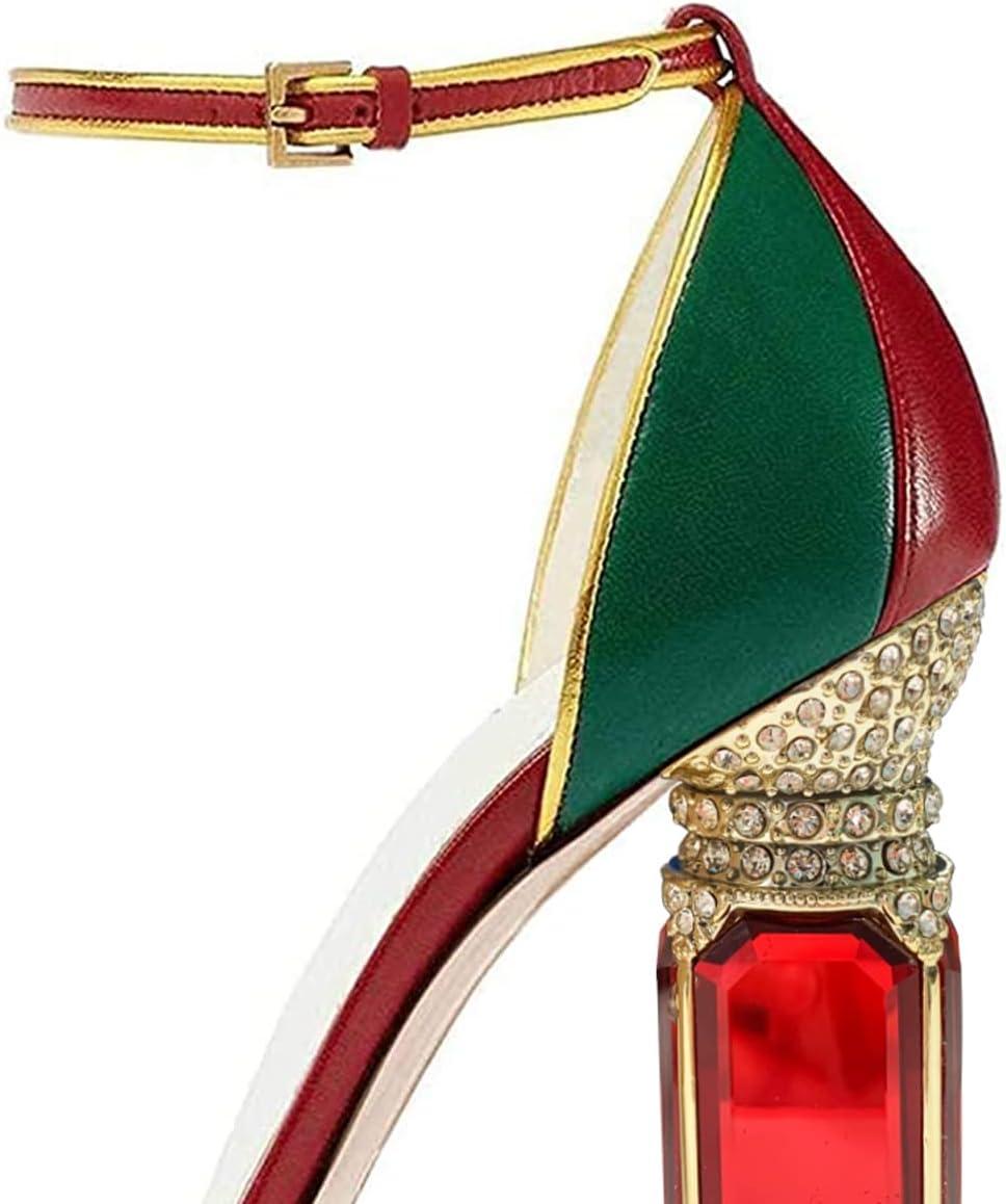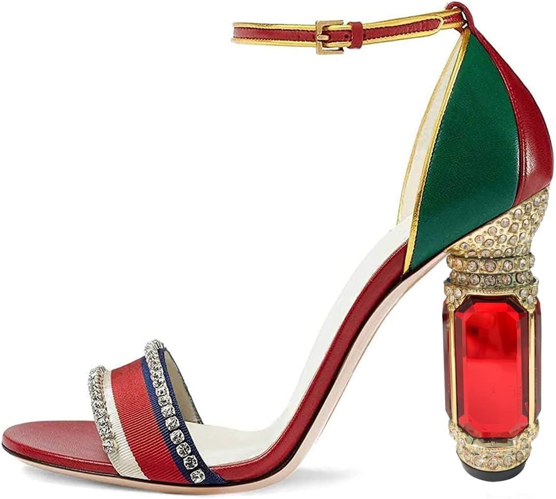 FSJ Women Open Toe Stylish Sandals Ankle Strap Chunky Block High Thick Heels Wedding Party Ballroom Shoes Size 4-15 US(Red Green)