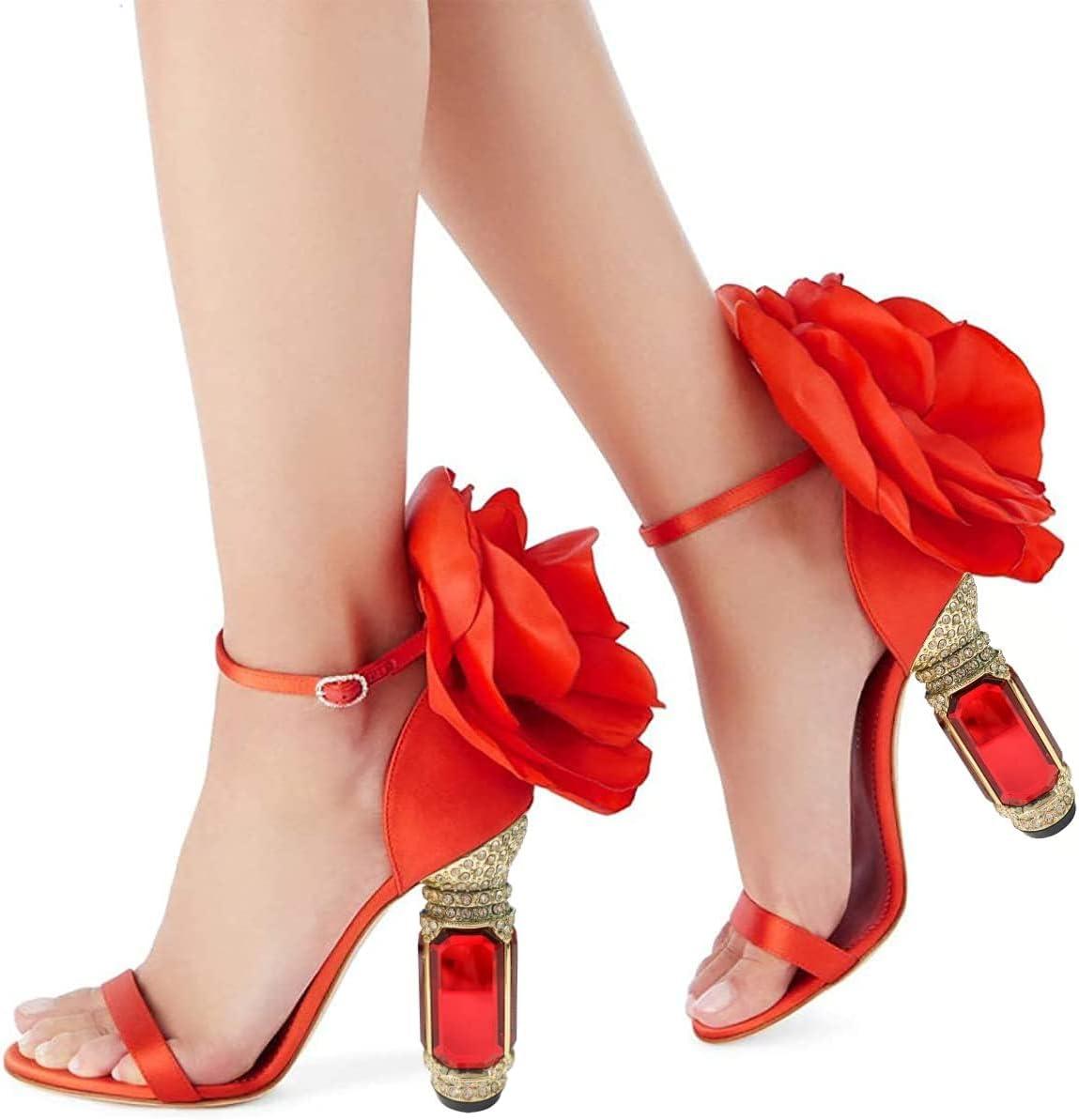 imageFSJ Women Open Toe Stylish Sandals Ankle Strap Chunky Block High Thick Heels Wedding Party Ballroom Shoes Size 415 USRed Orange