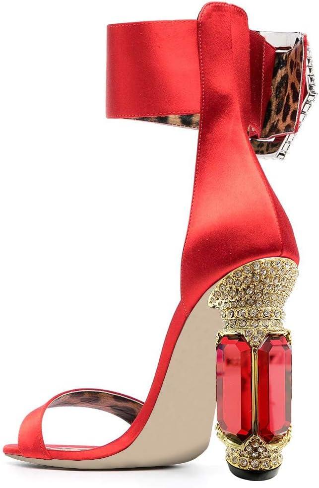 FSJ Women Open Toe Stylish Sandals Ankle Strap Chunky Block High Thick Heels Wedding Party Ballroom Shoes Size 4-15 US(Red)
