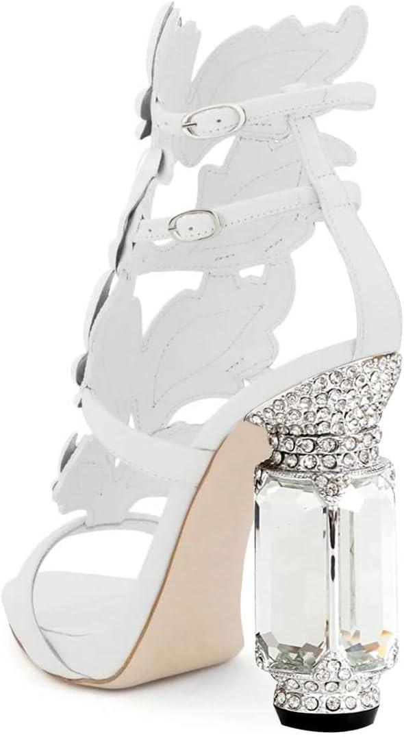 imageFSJ Women Open Toe Stylish Sandals Ankle Strap Chunky Block High Thick Heels Wedding Party Ballroom Shoes Size 415 USWhite Feather