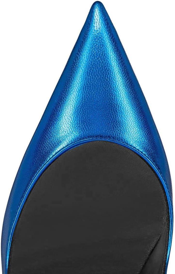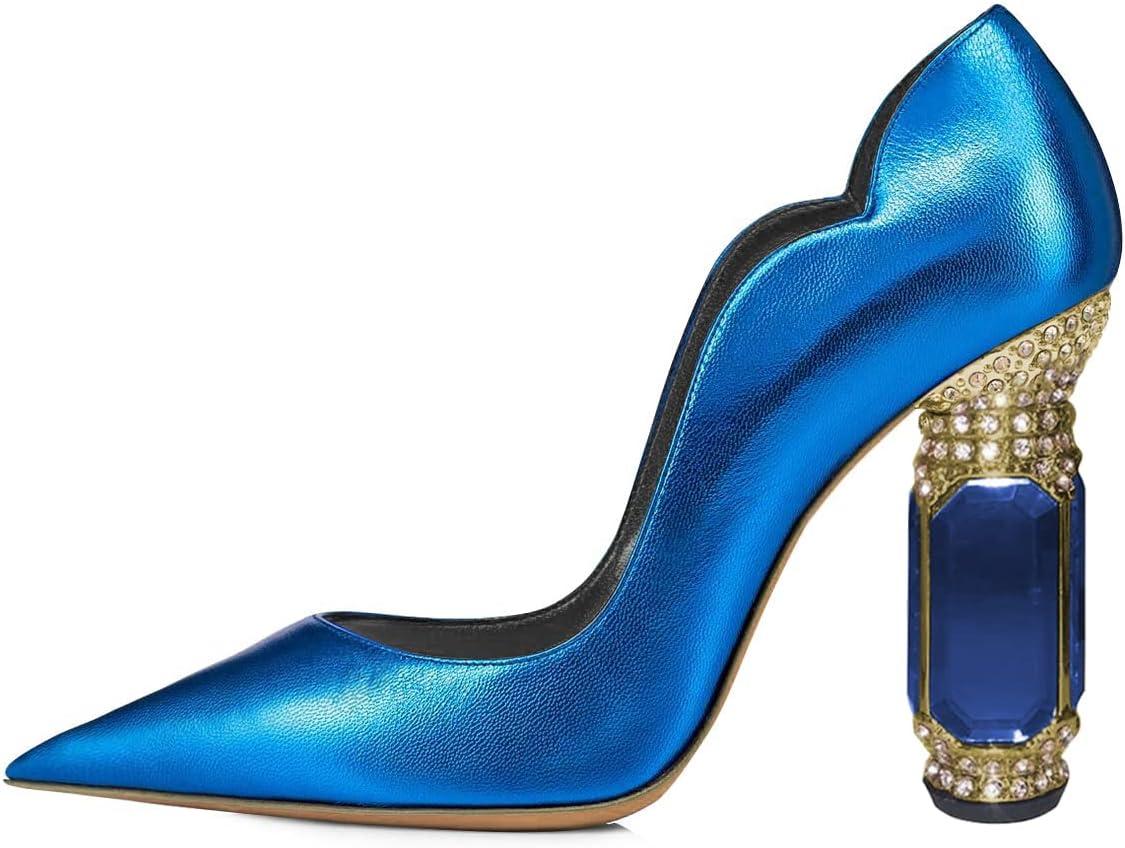 FSJ Women Pointed Toe Crystal High Heel Pumps Comfort Slip On Chunky Block Heel Bridal Wedding Evening Party Prom Shoes Size 4-15 US(Blue Patent)