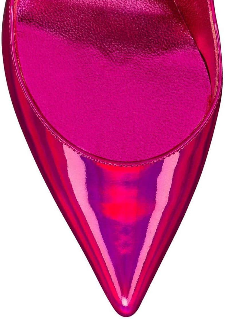 imageFSJ Women Pointed Toe Crystal High Heel Pumps Comfort Slip On Chunky Block Heel Bridal Wedding Evening Party Prom Shoes Size 415 USFushcia Mirror