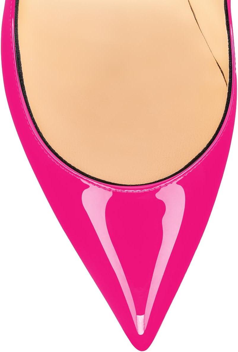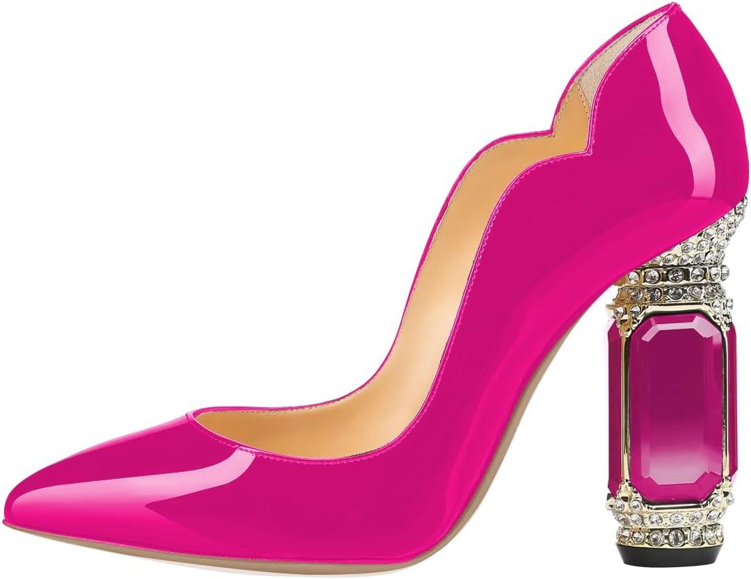 FSJ Women Pointed Toe Crystal High Heel Pumps Comfort Slip On Chunky Block Heel Bridal Wedding Evening Party Prom Shoes Size 4-15 US(Fushcia)