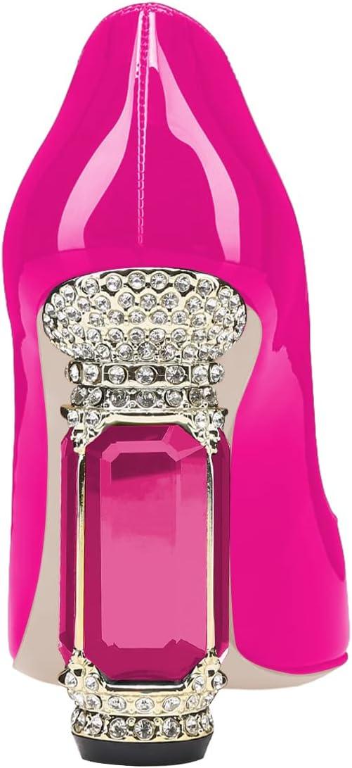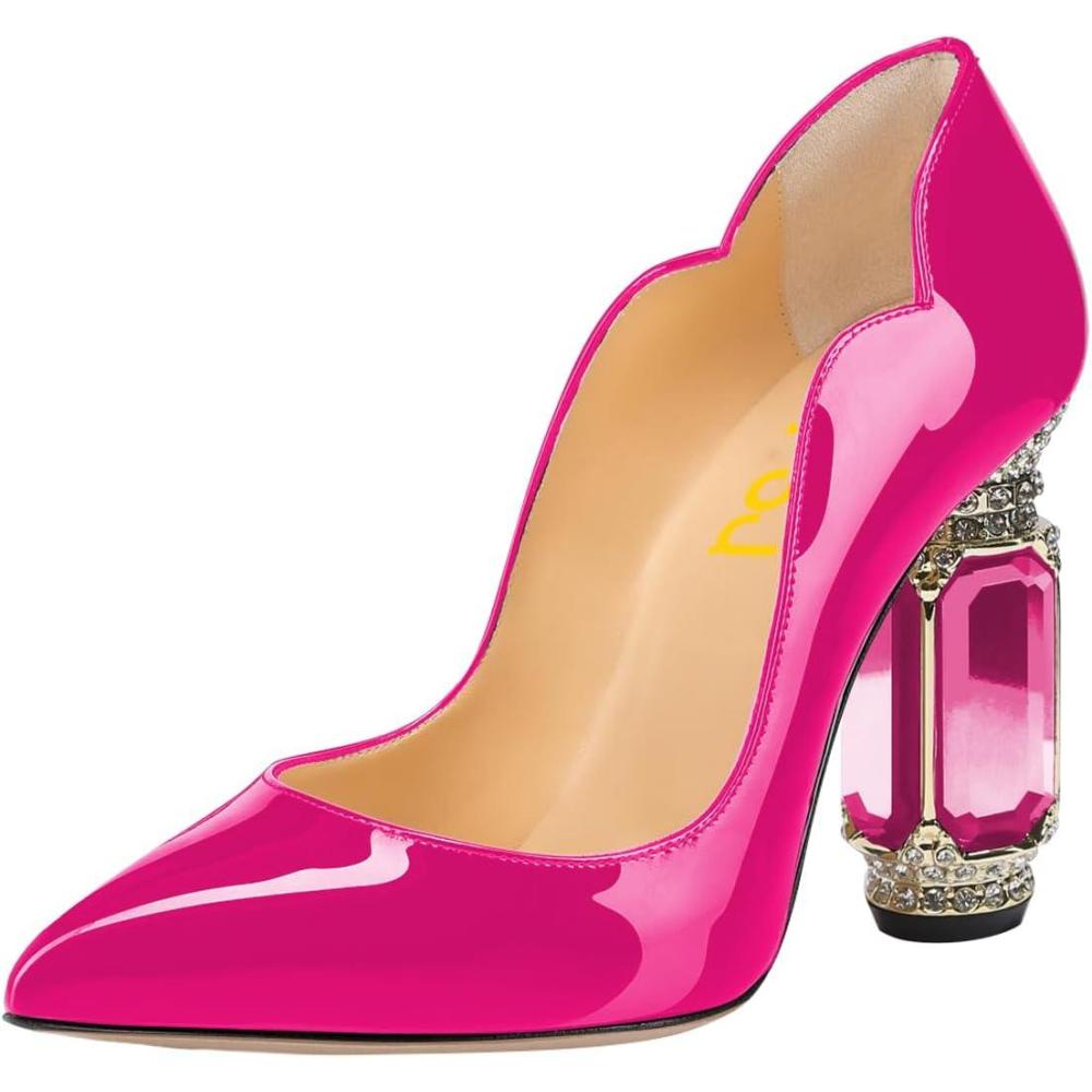 imageFSJ Women Pointed Toe Crystal High Heel Pumps Comfort Slip On Chunky Block Heel Bridal Wedding Evening Party Prom Shoes Size 415 USFushcia Mirror
