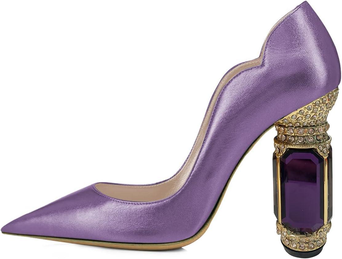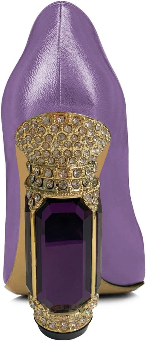 FSJ Women Pointed Toe Crystal High Heel Pumps Comfort Slip On Chunky Block Heel Bridal Wedding Evening Party Prom Shoes Size 4-15 US(Medium Purple)