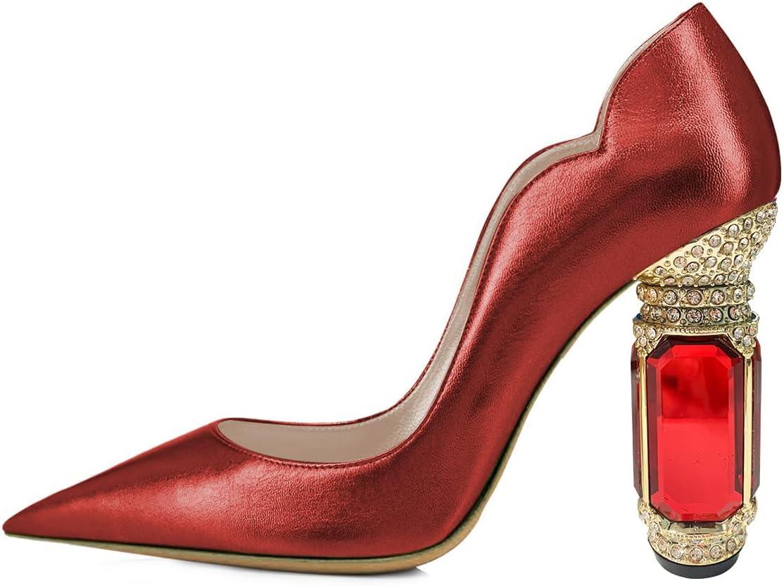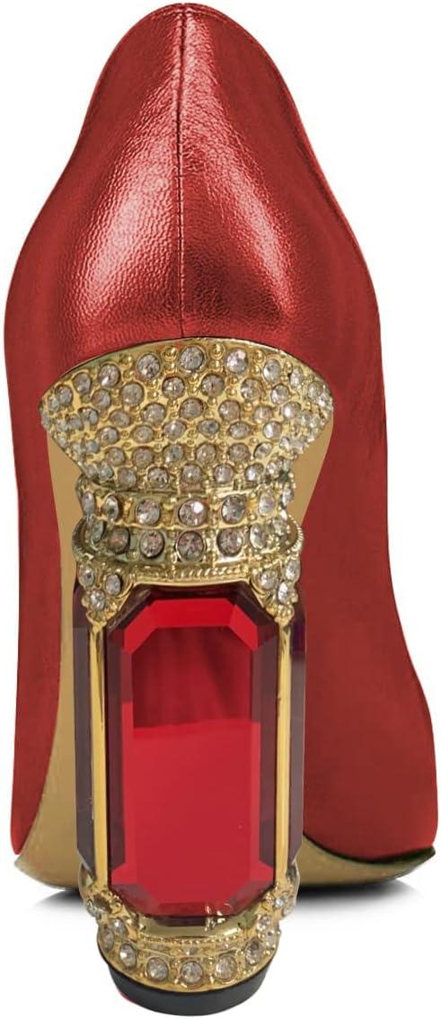 imageFSJ Women Pointed Toe Crystal High Heel Pumps Comfort Slip On Chunky Block Heel Bridal Wedding Evening Party Prom Shoes Size 415 USRed Mirror