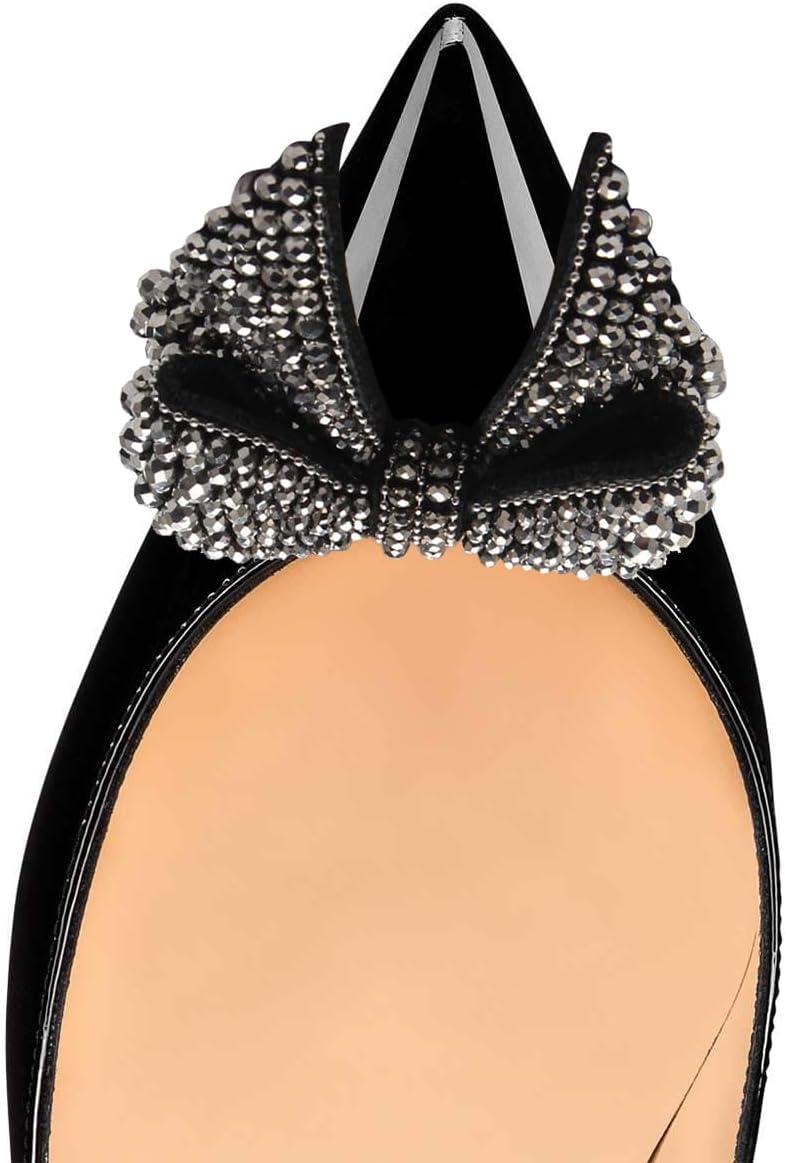FSJ Women Pointed Toe Crystal Pump Rhinestone Bow Block Low Heel Slip On Comfy Date Party Shoes Size 4-16 US(Black)