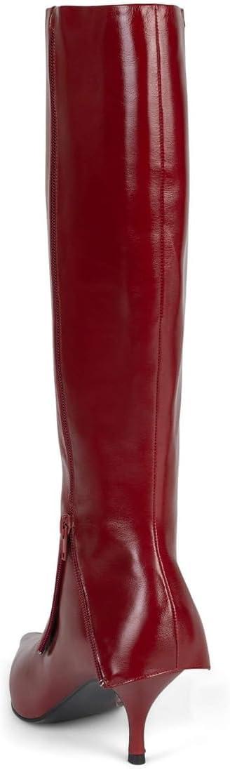 FSJ Women Pointed Toe Knee High Boots Kitten Low Heel Wide Calf Zipper Fold Over Evening Daily Wear Dress Shoes Size 4-16 US(Red)