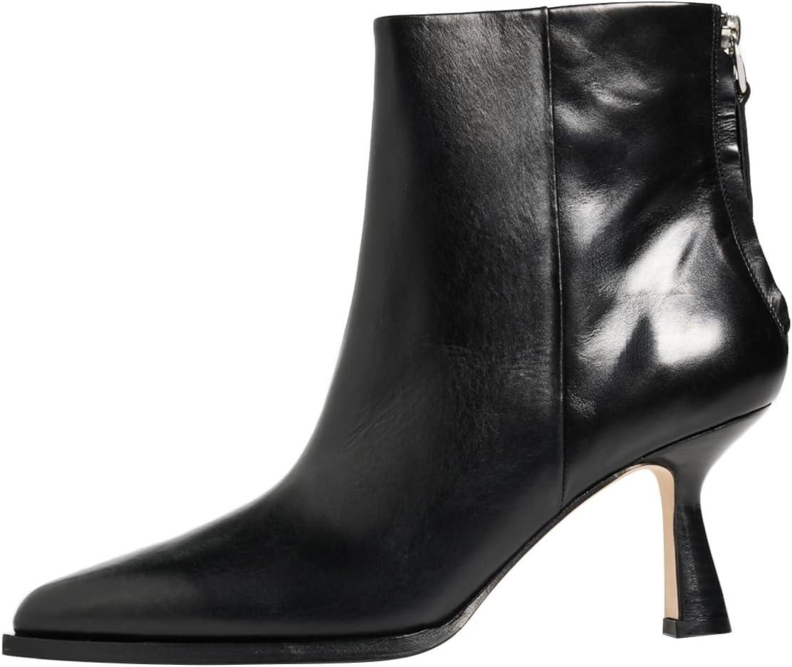 FSJ Women Pointed Toe Low Kitten Heel Ankle Boots Faux Leather Back Zipper Classic Short Booties Basic Office Dress Shoes Size 4-16 US(Black)