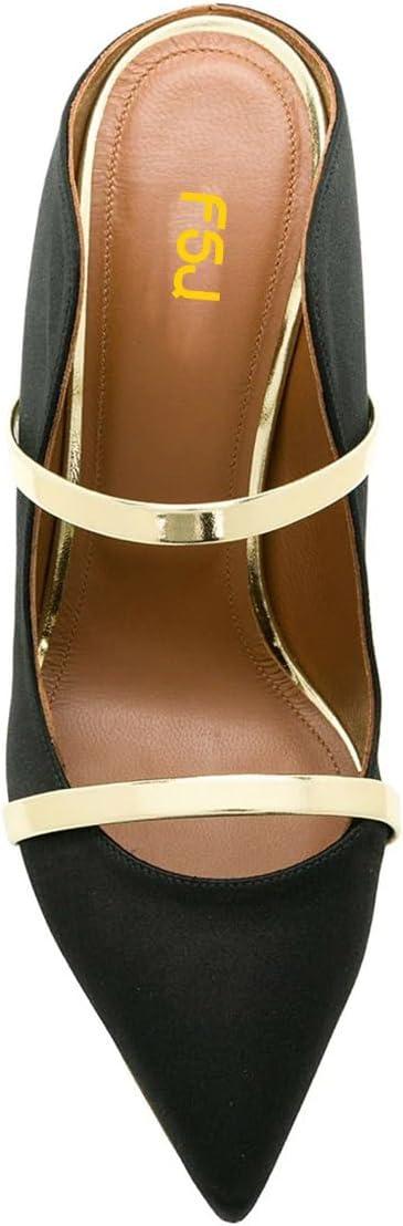 imageFSJ Women Pointed Toe Mules Chunky High Heels Sandals Pumps Slip On Two Strap Chic Crystal Block Heels Backless Casual Dressy Shoes Size 416 USBlack Satin