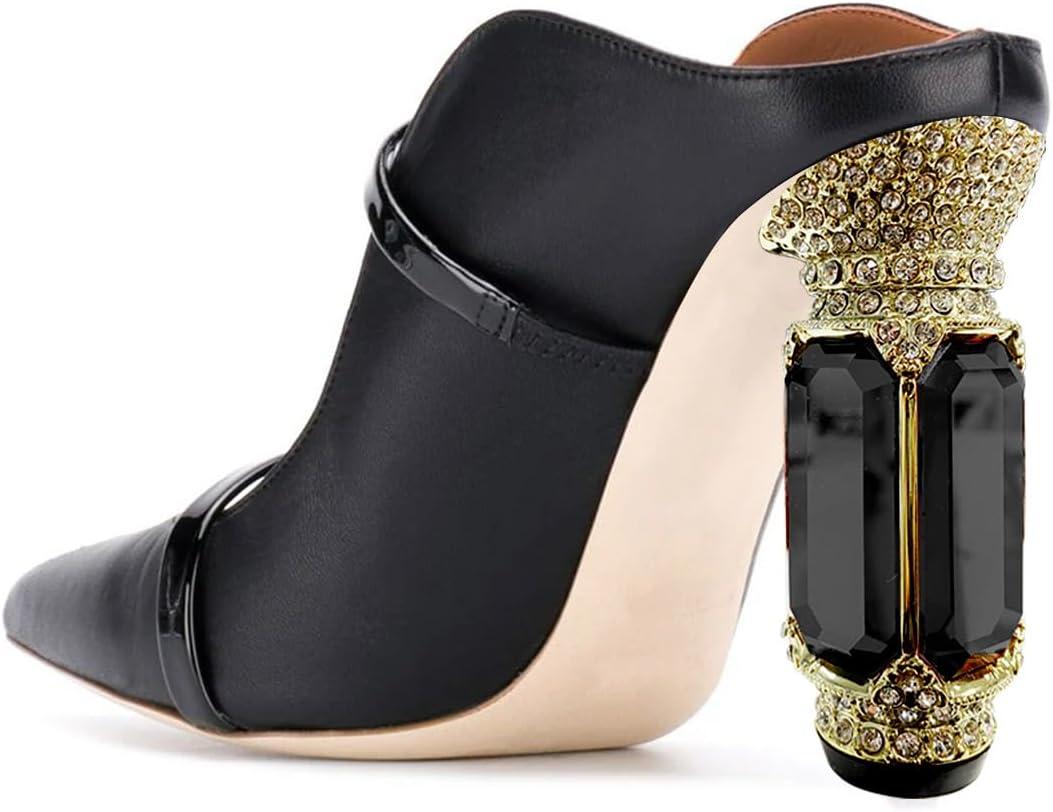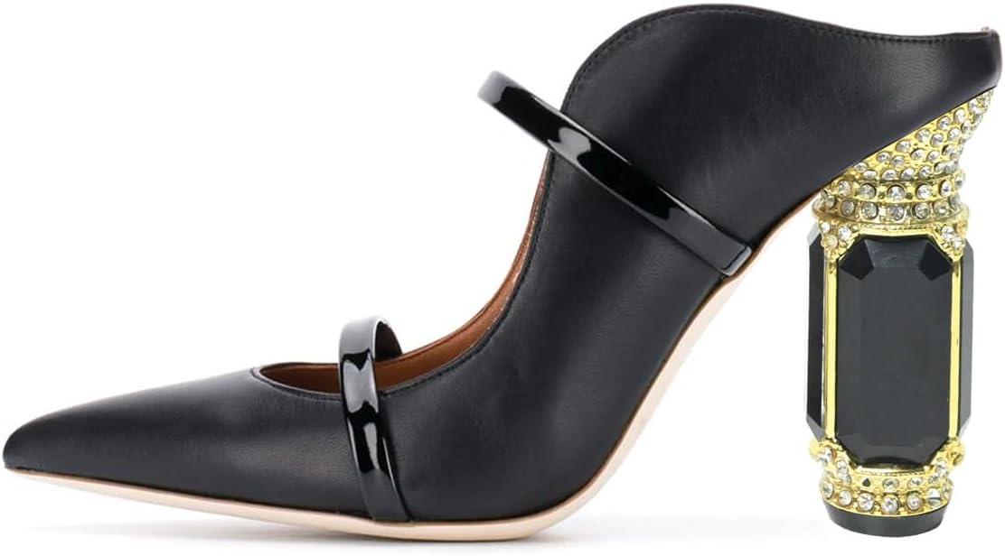 FSJ Women Pointed Toe Mules Chunky High Heels Sandals Pumps Slip On Two Strap Chic Crystal Block Heels Backless Casual Dressy Shoes Size 4-16 US(Black Rhinestones)