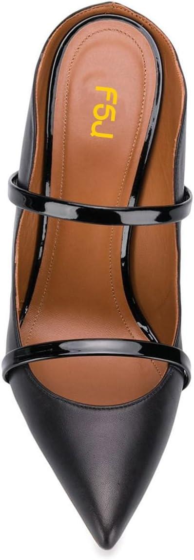 FSJ Women Pointed Toe Mules Chunky High Heels Sandals Pumps Slip On Two Strap Chic Crystal Block Heels Backless Casual Dressy Shoes Size 4-16 US(Black)