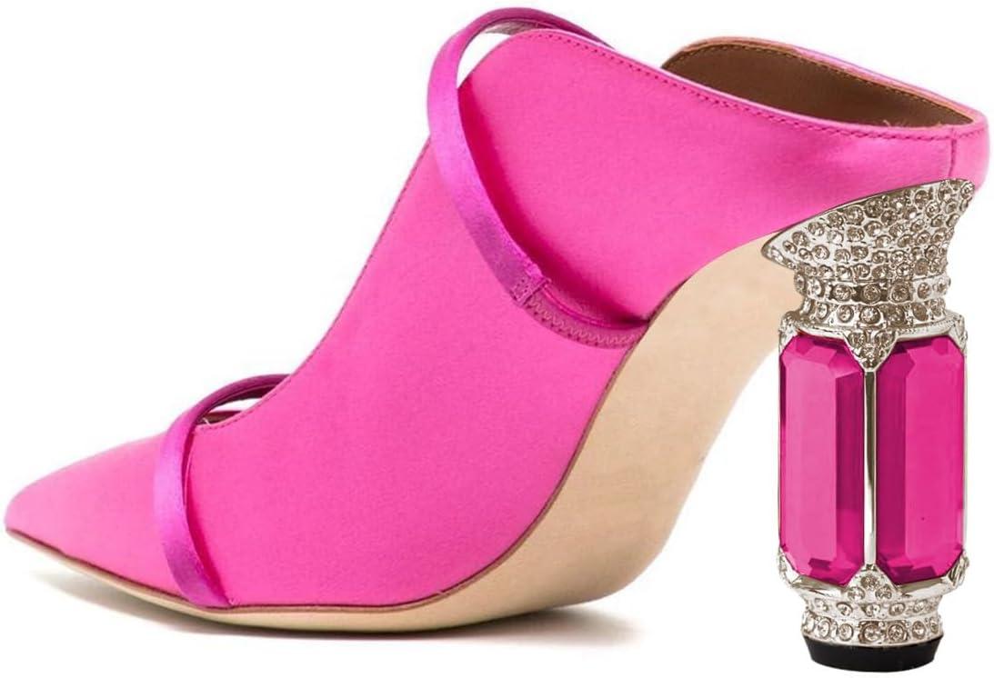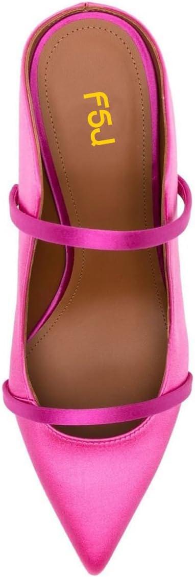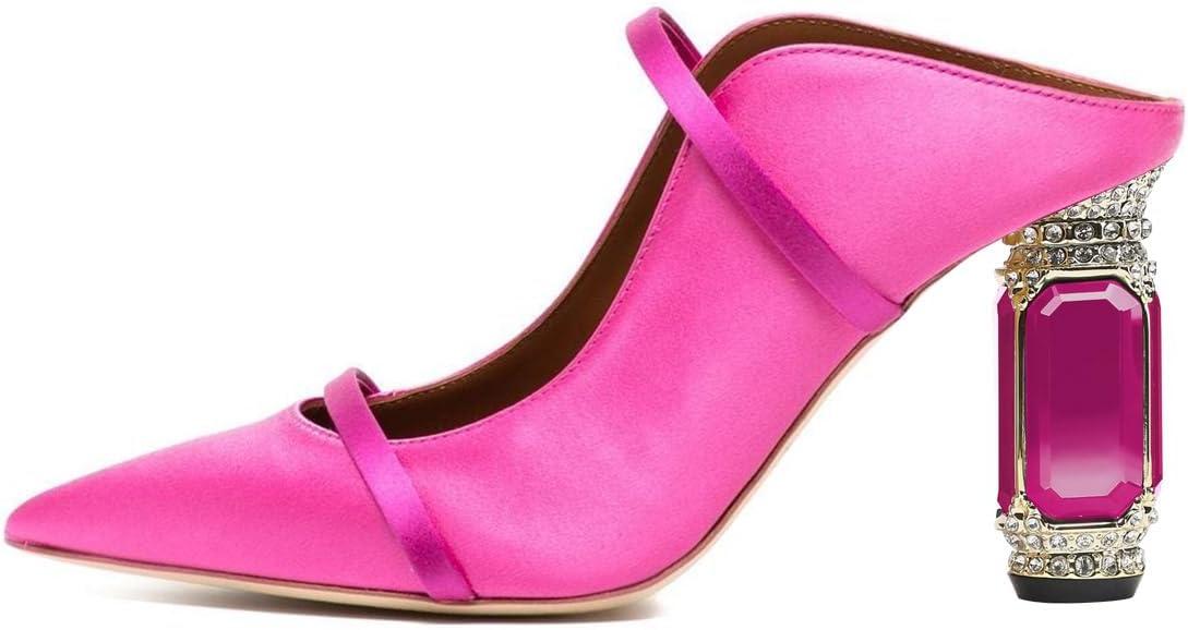 FSJ Women Pointed Toe Mules Chunky High Heels Sandals Pumps Slip On Two Strap Chic Crystal Block Heels Backless Casual Dressy Shoes Size 4-16 US(Fuchsia)