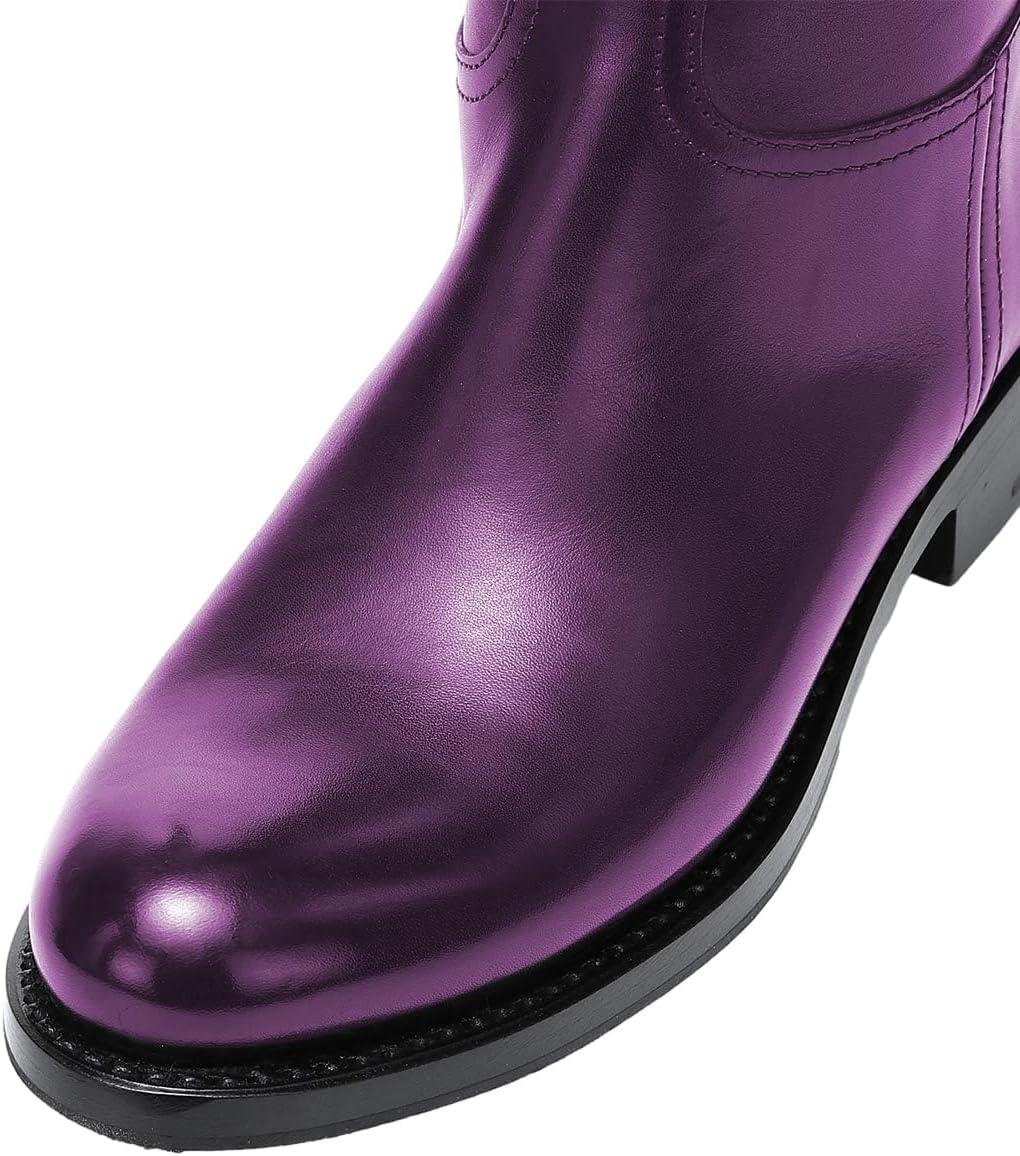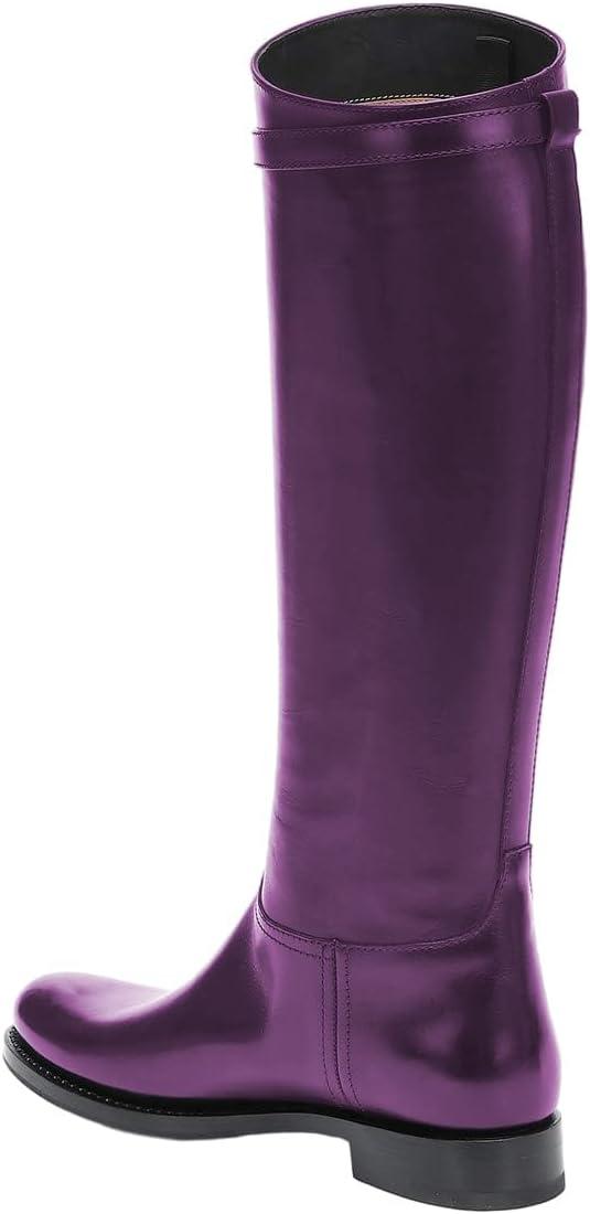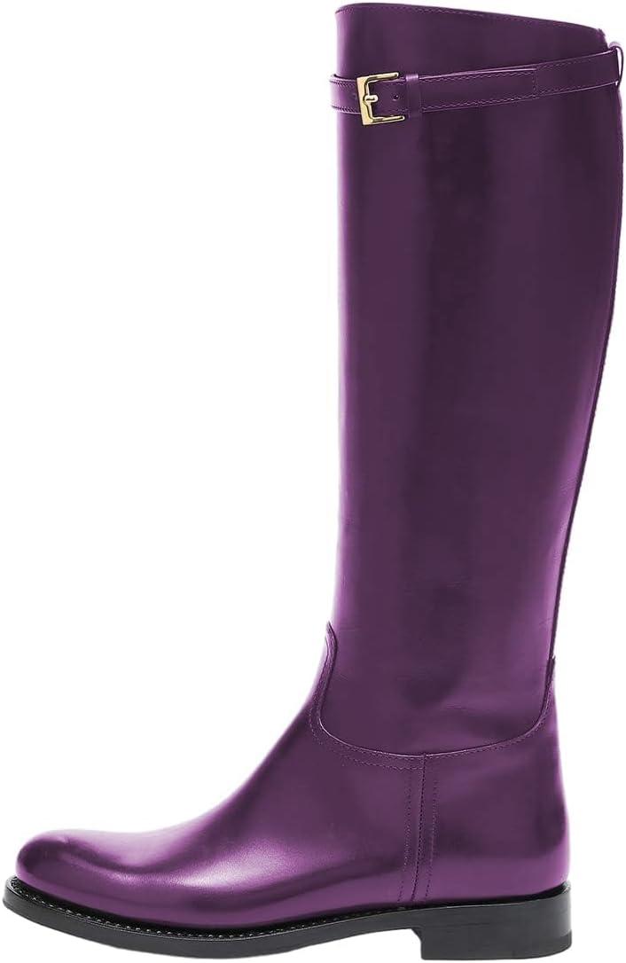 FSJ Women Regular Round Toe Flats Riding Knee High Boots Wide Calf Buckled Strappy Chunky Low Heel Western Long Boots Size 4-15 US(Purple)