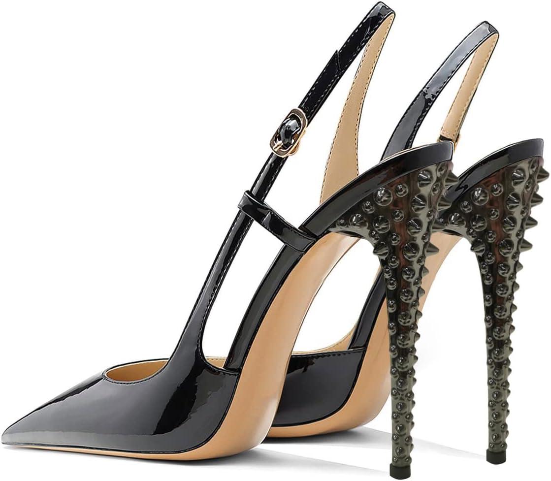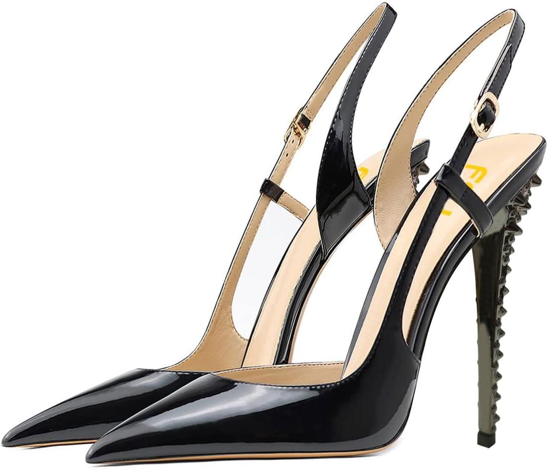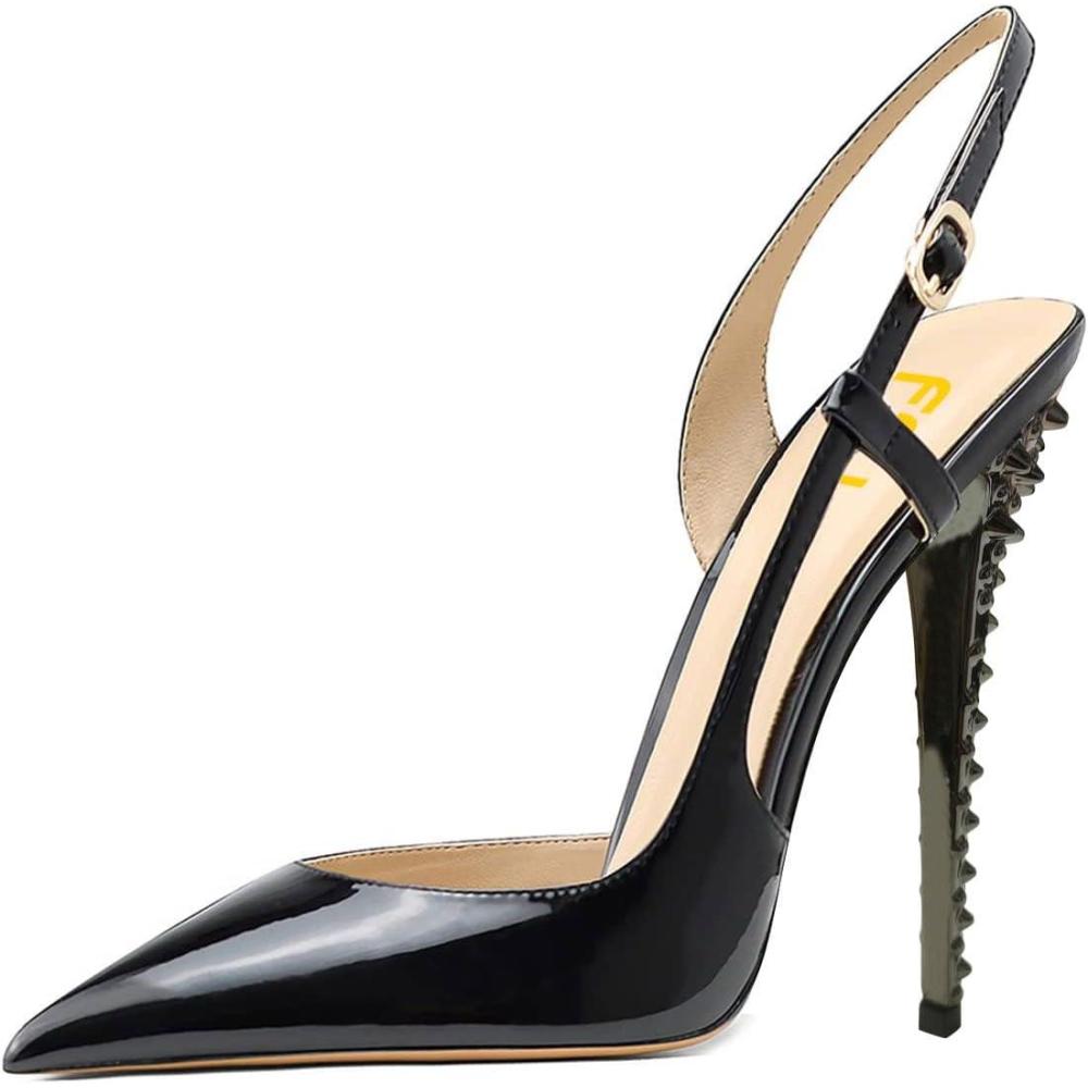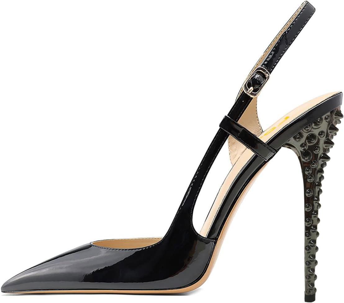 FSJ Women Sexy Pointed Toe D’Orsay High Heel Slingback Pumps Sandals Cutout Strappy Stiletto Slip On Formal Casual Shoes Size 4-15 US(Black-spike)