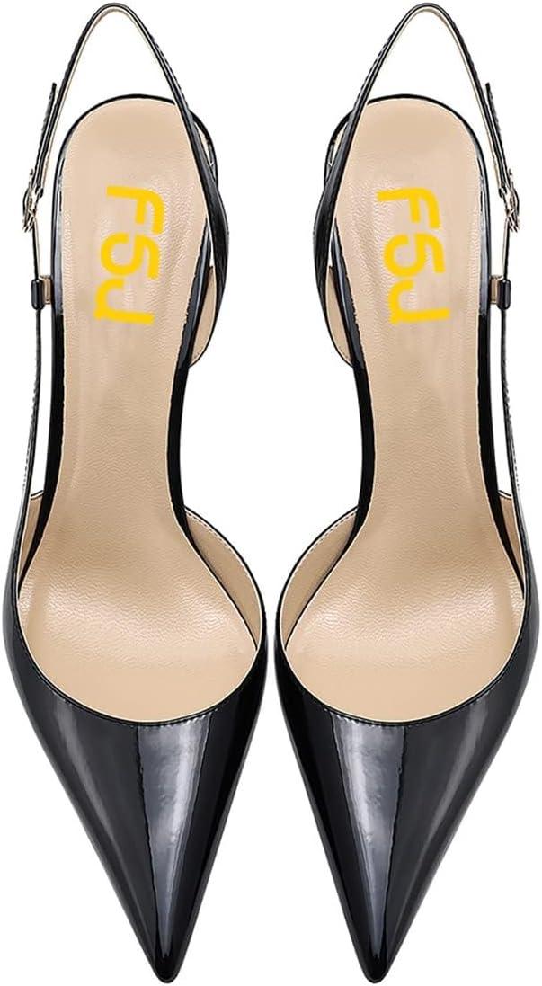 imageFSJ Women Sexy Pointed Toe DOrsay High Heel Slingback Pumps Sandals Cutout Strappy Stiletto Slip On Formal Casual Shoes Size 415 USBlackspike