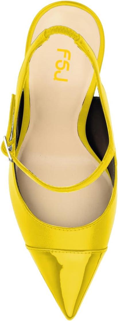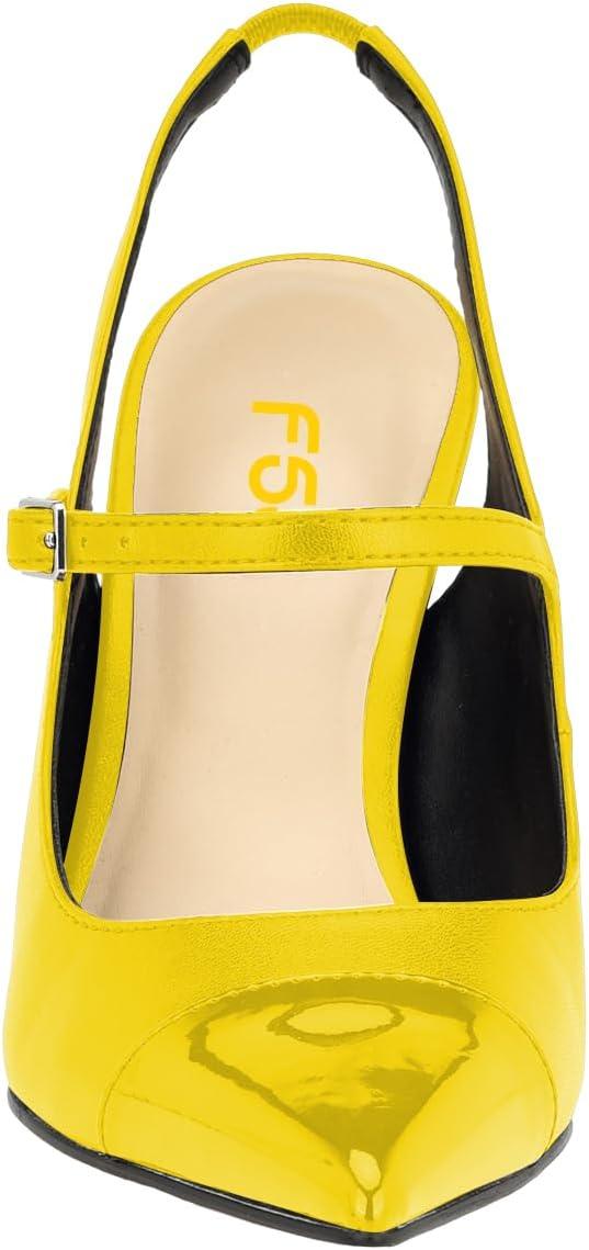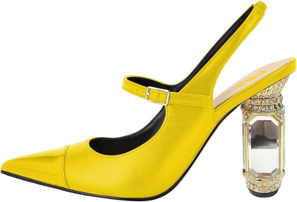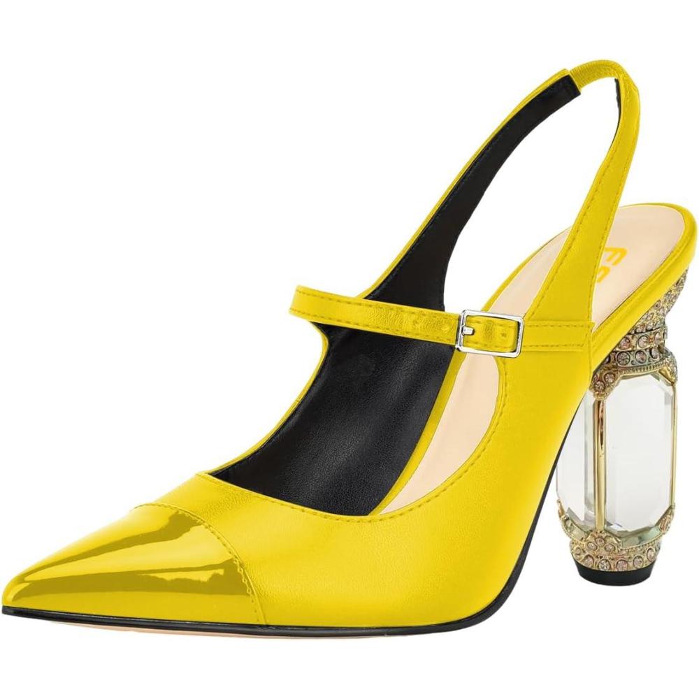 FSJ Women Slingback Crystal High Heel Pointed Closed Toe Ankle Strap Pumps Fashion Backless Dress Sandals Prom Party Shoes Size 4-16 US(Yellow)