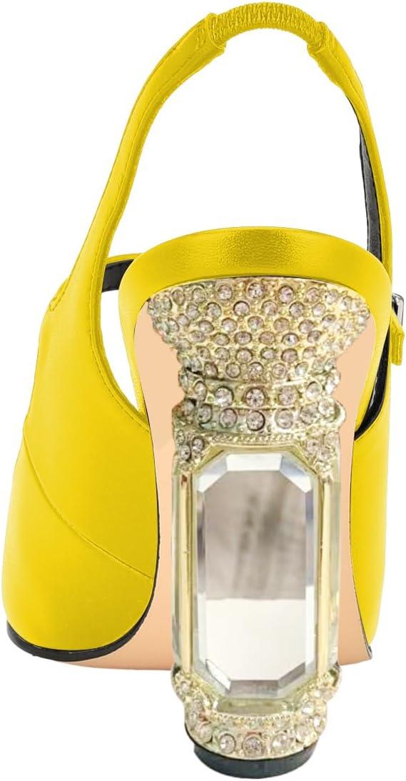 imageFSJ Women Slingback Crystal High Heel Pointed Closed Toe Ankle Strap Pumps Fashion Backless Dress Sandals Prom Party Shoes Size 416 USYellow