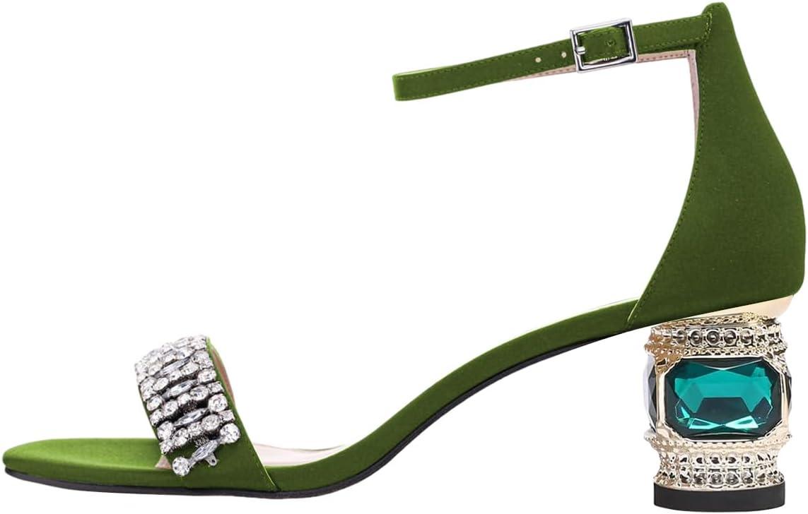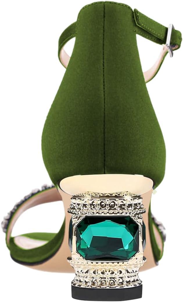 FSJ Women Sparkly Open Toe Rhinestone Low Block Heel Sandals Crystal Strap Studded Strappy Formal Dress Prom Party Pump Shoes Size 4-16 US(Green)