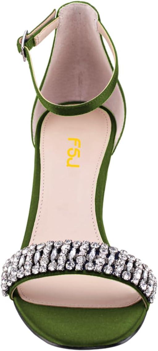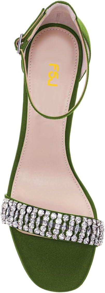 imageFSJ Women Sparkly Open Toe Rhinestone Low Block Heel Sandals Crystal Strap Studded Strappy Formal Dress Prom Party Pump Shoes Size 416 USGreen