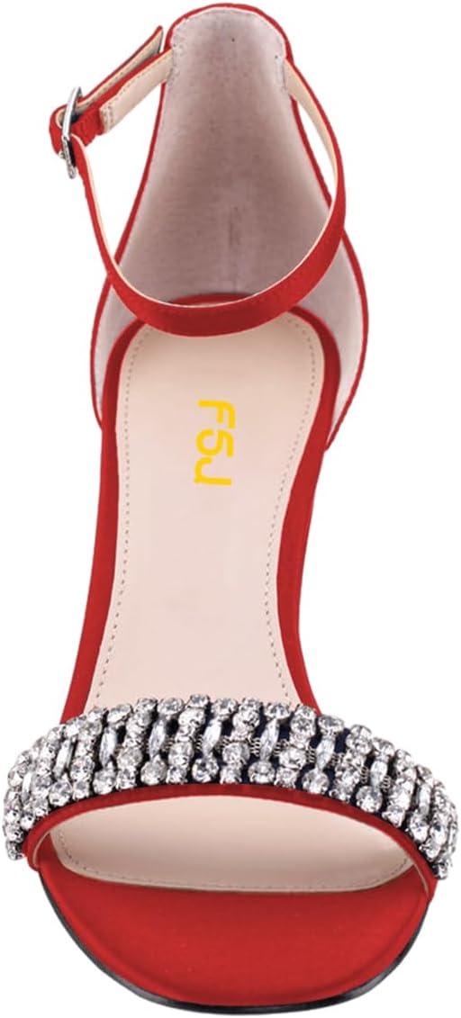 imageFSJ Women Sparkly Open Toe Rhinestone Low Block Heel Sandals Crystal Strap Studded Strappy Formal Dress Prom Party Pump Shoes Size 416 USRed