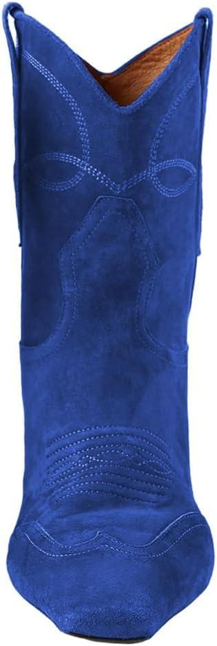 imageFSJ Women Square Toe Comfort Kitten Low Heel Ankle Boot Pull On Bootie Fall Winter Cowgirl Cowboy Dressy Shoes Size 416 USBlue Suede