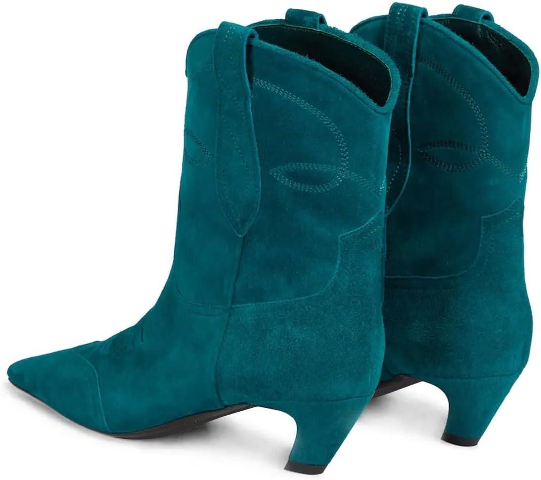 FSJ Women Square Toe Comfort Kitten Low Heel Ankle Boot Pull On Bootie Fall Winter Cowgirl Cowboy Dressy Shoes Size 4-16 US(Blue Suede)