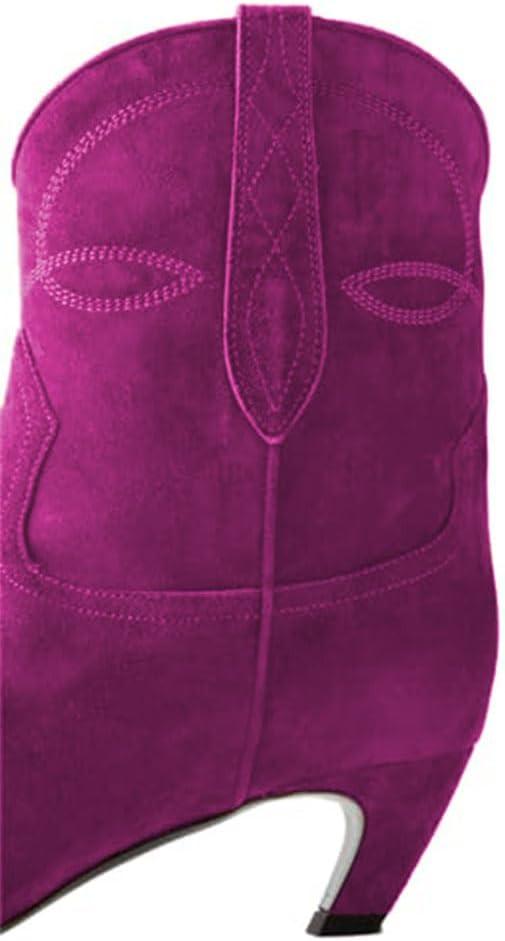 image:imageFSJ Women Square Toe Comfort Kitten Low Heel Ankle Boot Pull On Bootie Winter Cowgirl Cowboy Sexy Dressy Shoes Size 416 USFuchsia Suede