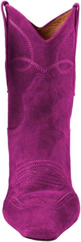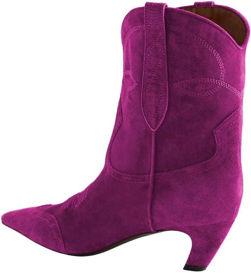 FSJ Women Square Toe Comfort Kitten Low Heel Ankle Boot Pull On Bootie Winter Cowgirl Cowboy Sexy Dressy Shoes Size 4-16 US(Fuchsia Suede)