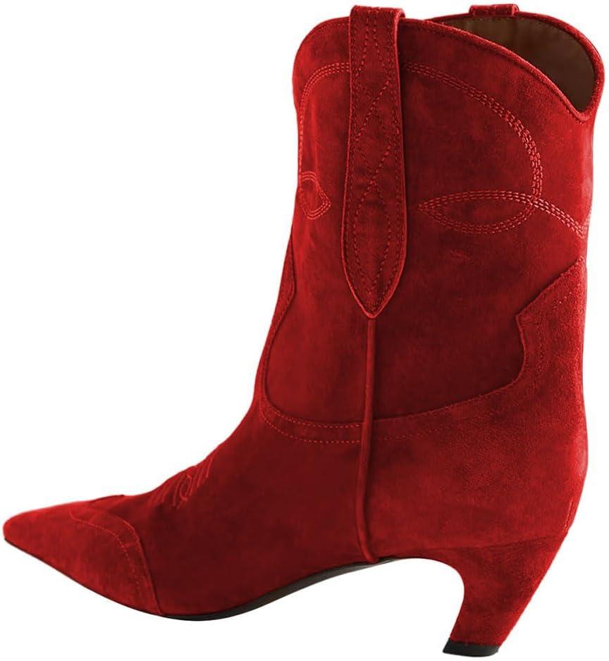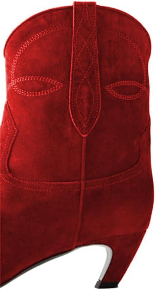 FSJ Women Square Toe Comfort Kitten Low Heel Ankle Boot Pull On Bootie Winter Cowgirl Cowboy Sexy Dressy Shoes Size 4-16 US(Red Suede)