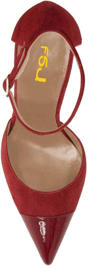 imageFSJ Women Stiletto High Heels DOrsay Pumps Pointed Closed Point Toe Ankle Strap Office Dress Shoes Size 415 M USWine Red