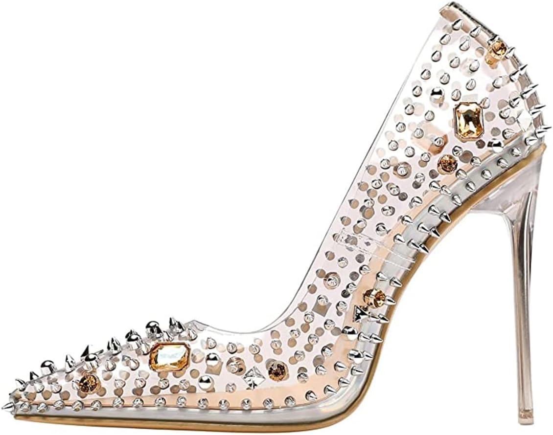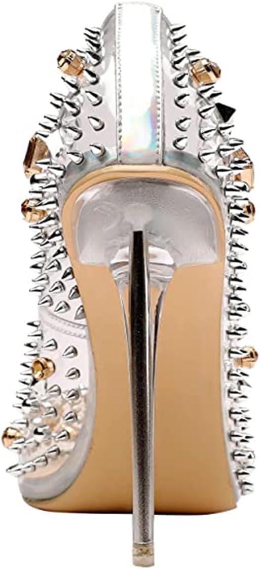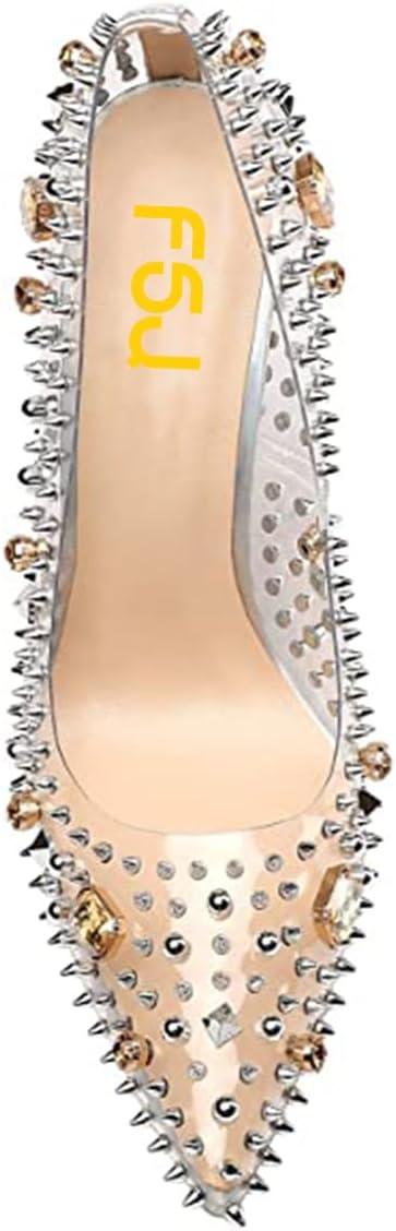 FSJ Women Studded Pointed Toe Transparent Pumps High Heels Shoes with Cute Bowknot US Size 4-15 M(Rivets)