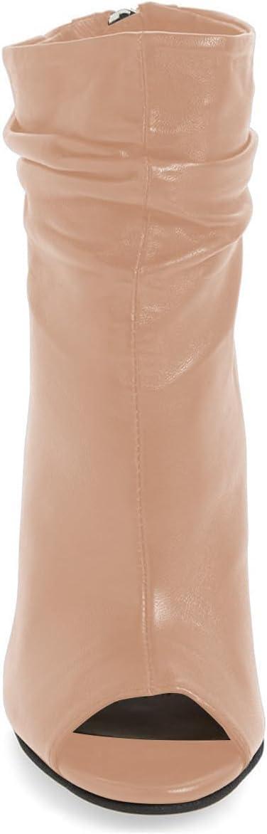 imageFSJ Women Stylish Peep Toe Slouch Ankle Boots Chunky Stacked Heels Party Prom Nightclub Evening Wedding Crystal Heel Dress Shoes Size 415 USNude