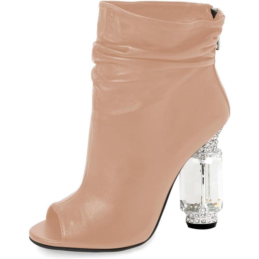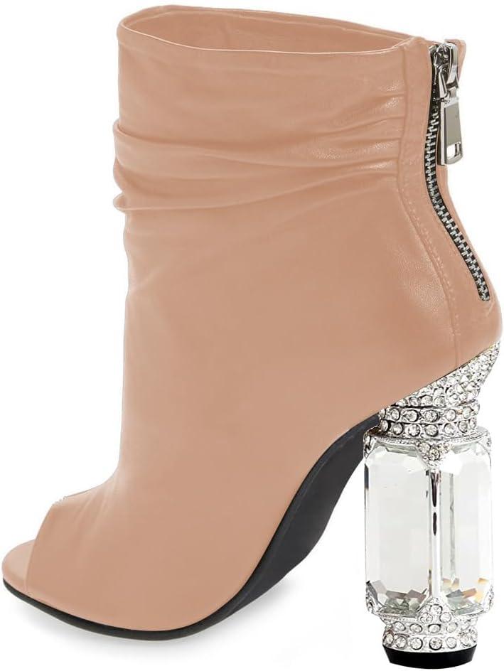 FSJ Women Stylish Peep Toe Slouch Ankle Boots Chunky Stacked Heels Party Prom Nightclub Evening Wedding Crystal Heel Dress Shoes Size 4-15 US(Nude)