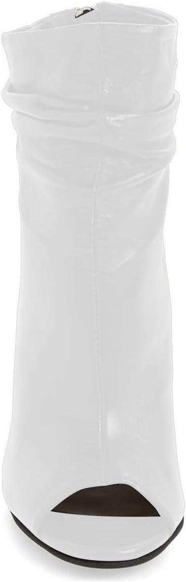 imageFSJ Women Stylish Peep Toe Slouch Ankle Boots Chunky Stacked Heels Party Prom Nightclub Evening Wedding Crystal Heel Dress Shoes Size 415 USWhite