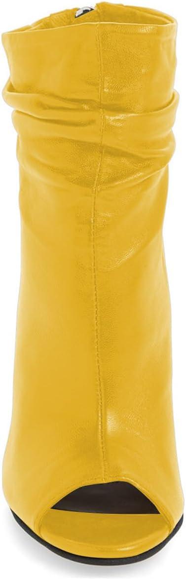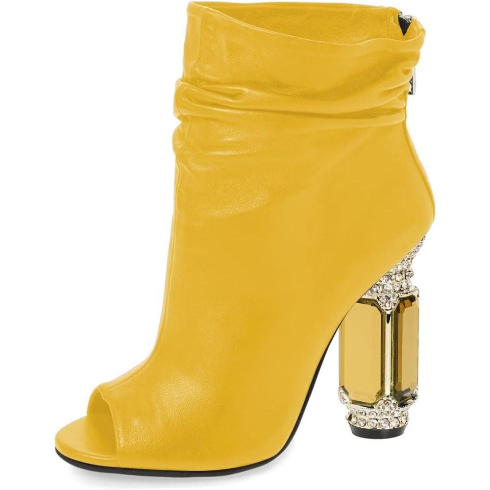 imageFSJ Women Stylish Peep Toe Slouch Ankle Boots Chunky Stacked Heels Party Prom Nightclub Evening Wedding Crystal Heel Dress Shoes Size 415 USYellow