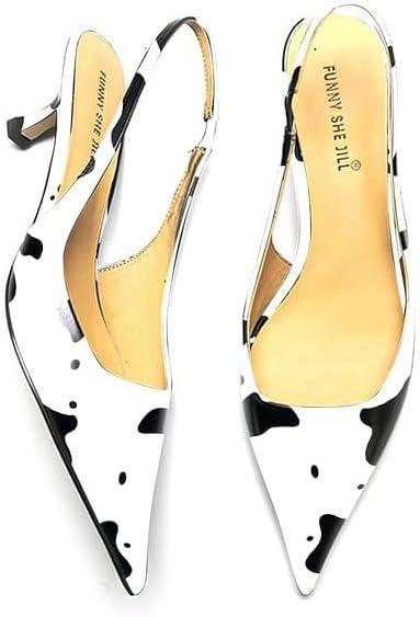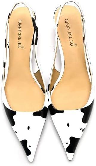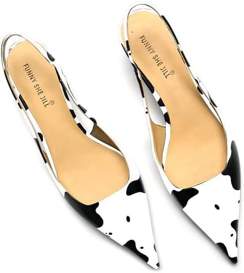 FSJ Women’s Mid Kitten Heel Slingback Sandals Pointy Toe Sexy Stiletto Pumps Comfortable Dress Summer Party Shoes Size 4-15 US(Cartoon)