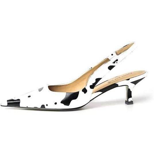 FSJ Women’s Mid Kitten Heel Slingback Sandals Pointy Toe Sexy Stiletto Pumps Comfortable Dress Summer Party Shoes Size 4-15 US(Cow)